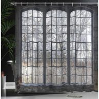 Ambesonne Industrial Shower Curtain Old Large Window with Broken Panes Deserted Hall Forest Trees Winter