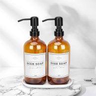 Amber Glass Soap Dispenser with Pump and Tray