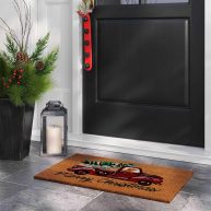 1’6×2’6 ‘Welcome’ Wreath Flocked Coir Christmas Doormat Red/Green