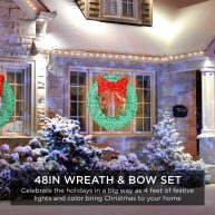 Best Choice Products 48in Artificial Pre-Lit Fir Christmas Wreath Decor w/ Red Bow