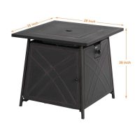 Bali Outdoors Gas Firepit Table, 28 Inch 50,000 Btu Square Outdoor Propane Fire Pit Table With Lid And Blue Fire Glass