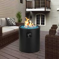 BALI OUTDOORS Round Propane Fire Pit Table Gas Firepit 23Inch Round Gas Fire Pit 50,000 BTU with Fire Glass