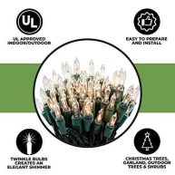 612 Vermont 100 Clear Christmas Twinkle Lights on Green Wire, Indoor and Outdoor Use