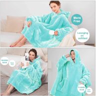 Aemicion Oversized Wearable Blanket Sherpa Blanket Hoodie Soft Warm Hooded Sweatshirt Hoodie Blanket
