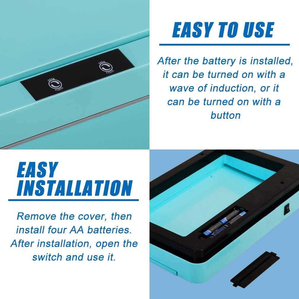 Free your hands, only need to be within 15cm of the lid, you can open the lid through the infrared sensor, no longer need to directly contact the trash can There is a switch button on the back of the trash can lid. When you do not use the trash can for a long time, you can turn off the switch, which can reduce battery consumption The trash can has good airtightness, which can isolate the odor emitted by the trash in the trash can to ensure that the air in the environment is not polluted The opening time can last seven seconds. When the infrared switch of the trash can is triggered, the lid can remain open for 7 seconds. You have enough time to empty the trash into the trash can.