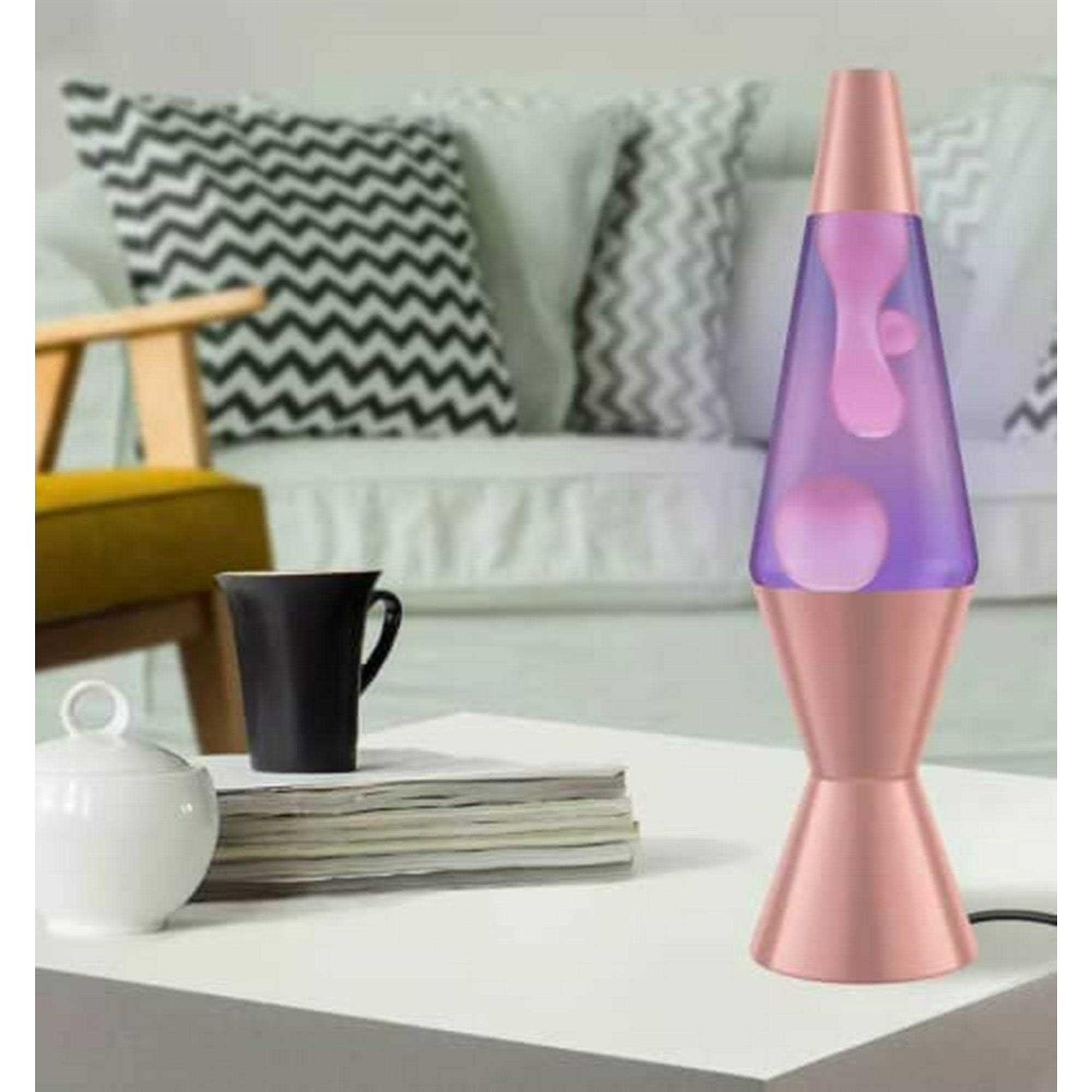 When youre looking for something shiny, warm, and comforting, turn to this blushing burnished Lava lamp. This Lamp is Sophisticated and a mesmerizing beauty. Watch as the Pink wax melts, flows and moves around the glass globe. Enjoy the colorful motion of this classic version of the timeless Lava lamp.