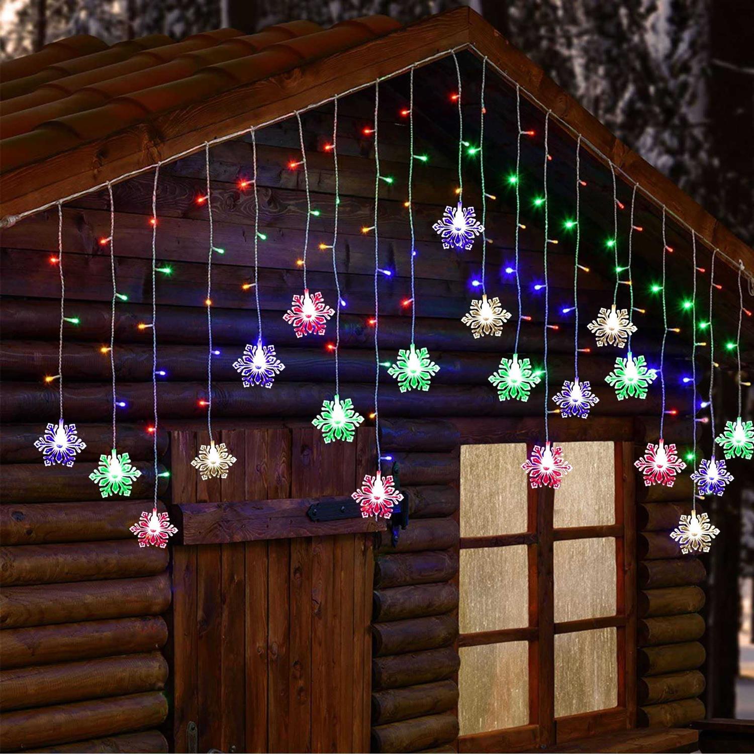 150 LED Icicle Lights with Snowflake,8 Twinkle Modes Curtain Lights,Hanging Fairy Lights for Outdoor Christmas Lights, Holiday Wedding Party
