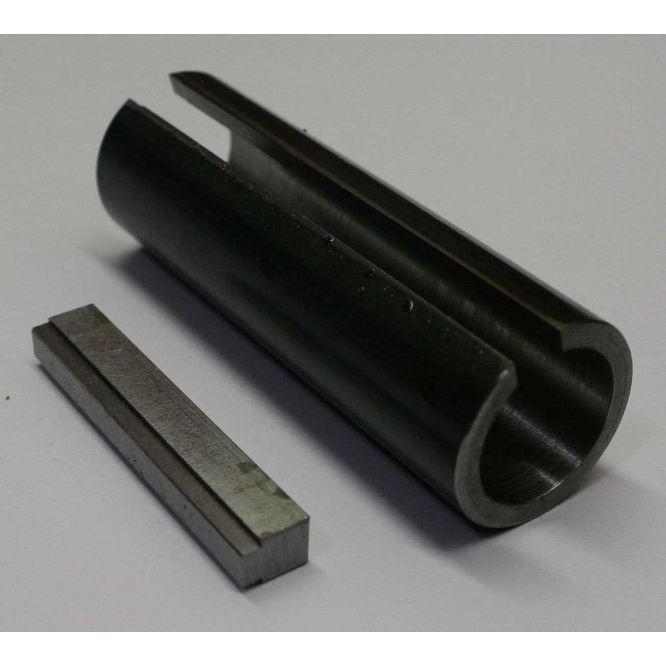 Sleeve Adapter Shaft Adapter Mower Snow Blower Predator A steel shaft adapter to convert a crankshaft from 3/4 to 1 inch shaft. The adapter is approximately 3 inches long and includes the step key needed to go from the 1/4 in key way to the 3/16 key way. A very handy way to use your old pulley on a new engine. The shaft adapter with special step key is show in the 3D model. The yellow is the key and the blue is the adapter sleeve as viewed from the end. The thicker part of the key goes through the groove in the adapter sleeve. This should be a snug to tight fit. You should slide the adapter on the shaft then install the key, it may require a small hammer to gentlty tap it in to place. It is intended to be a tight fit! Being loose will not properly transfer power and will create vibration which is harmful. Please note: most people missunderstand the way the key fits. It needs to be tight or it will not last. Also the wide portion of the key sits in the adapter, not the narrow part. The narrow part will go in the keyway groove of the smaller shaft. It will go only in the small shaft and the larger part will go through the adapter AND the larger keyway.