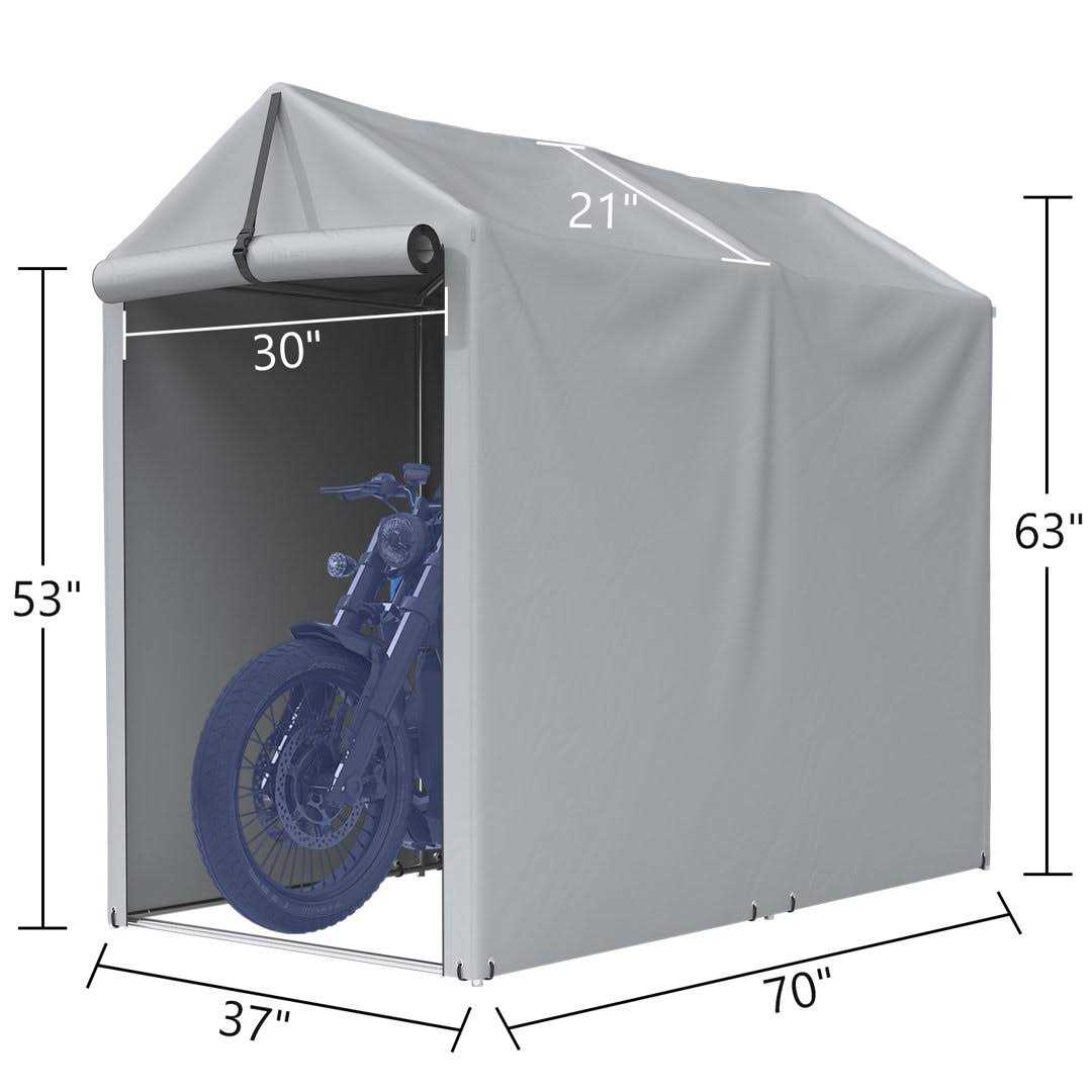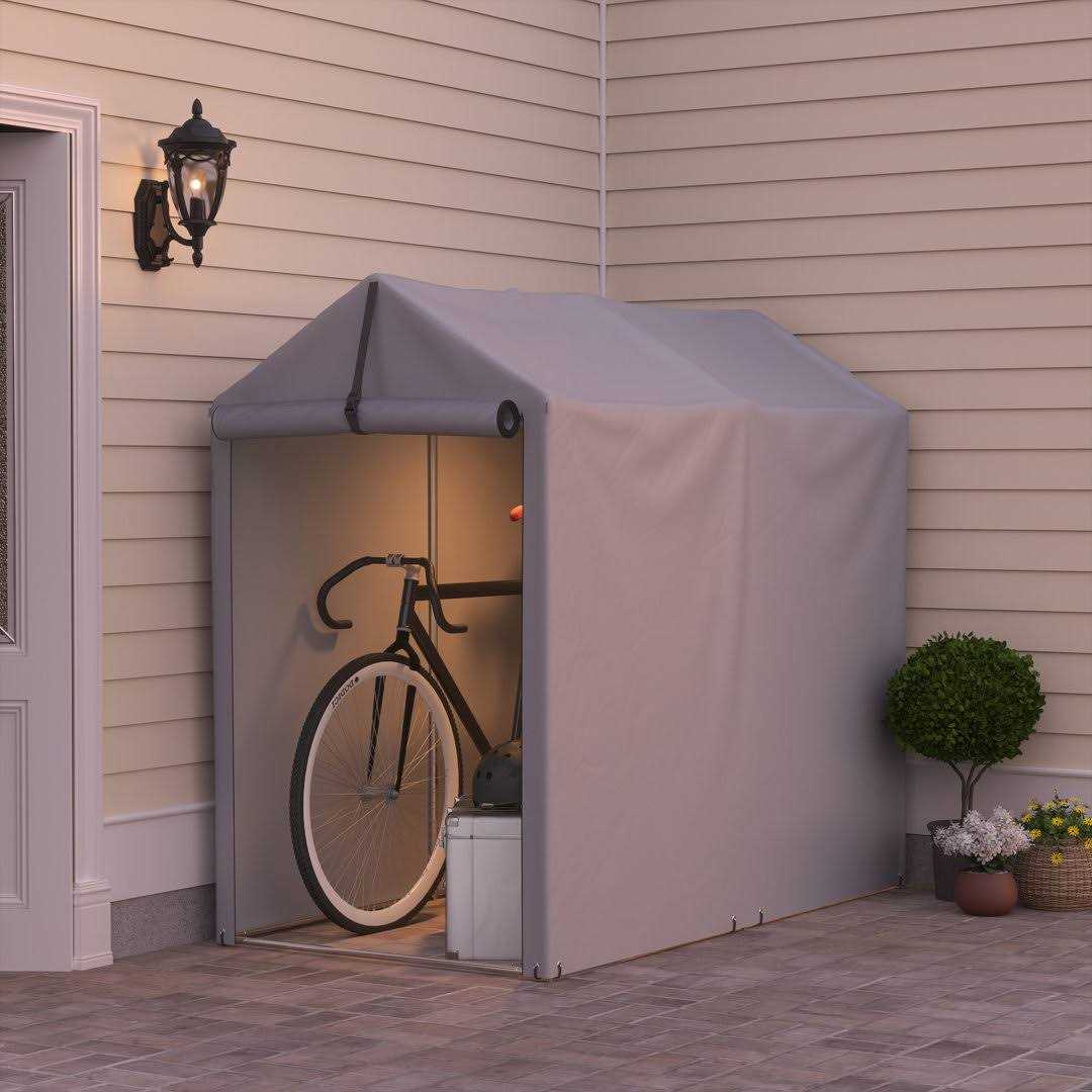 Homall Our storage sheds consist of a steel galvanized frame and extra thick polyethylene fabric for every season, protecting your belongings from weather elements such as sun, rain, dust, snow, high winds, etc. The roll-up door is equipped with double-end zippers for good ventilation and can be opened from the inside or outside for easy storage of various items such as: motorcycles, garden and lawn equipment, tools, lawn mowers, outdoor chairs, large umbrellas, bicycles, skateboards, garbage cans, children’s toys, firewood, etc.