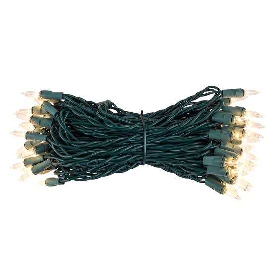35 Clear Mini Lights, 4″ Spacing, Green Wire