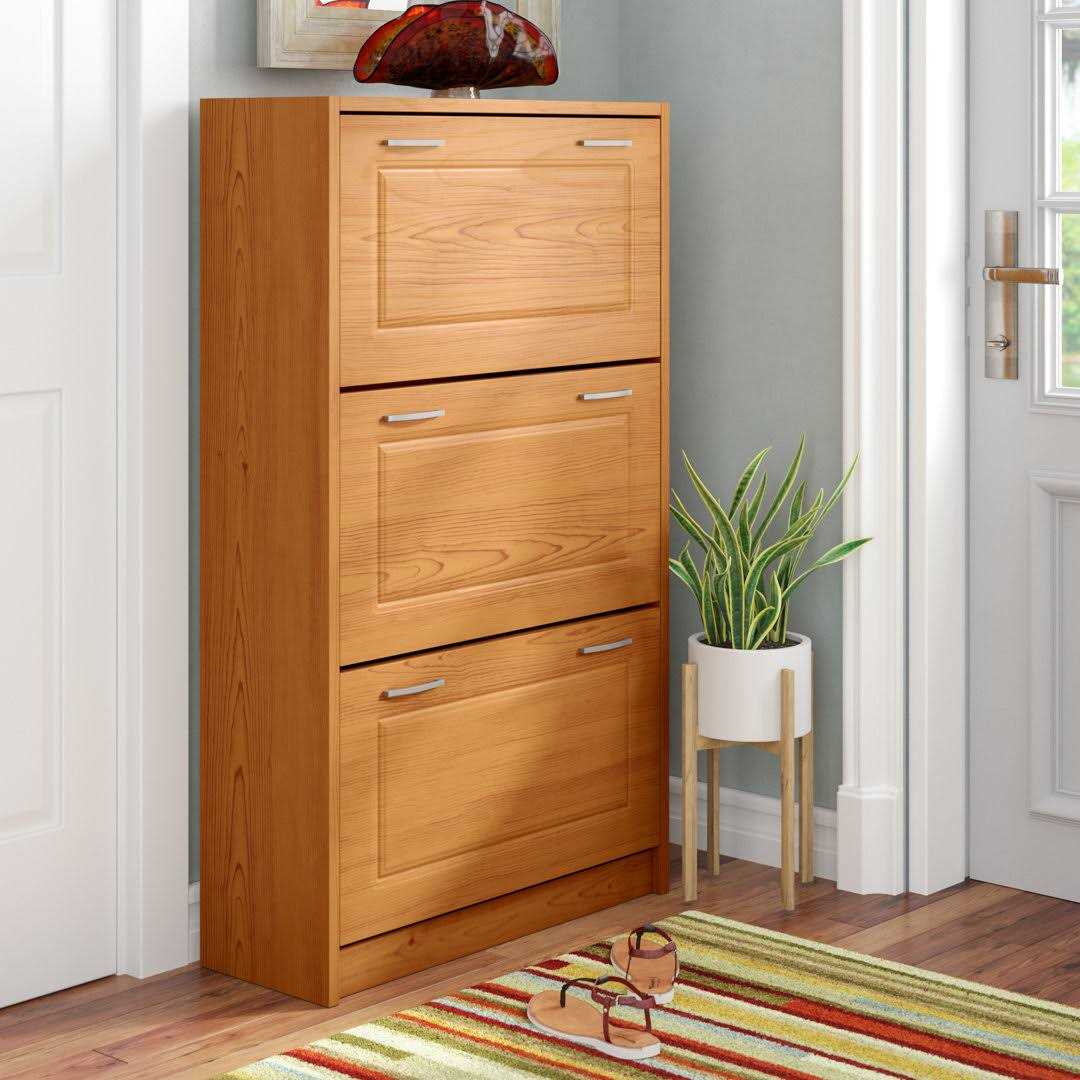 Latitude Run Have a weakness when it comes to shoes? Maximize your footwear storage space with this cabinet. It accommodates up to 36 pairs (even heels): three drawers open to reveal two bins for your footwear. Constructed from medium-density fiberboard with a clean-lined silhouette and neutral hue, this piece is perfect for contemporary entryways and master suites. Assembly is required for this design.