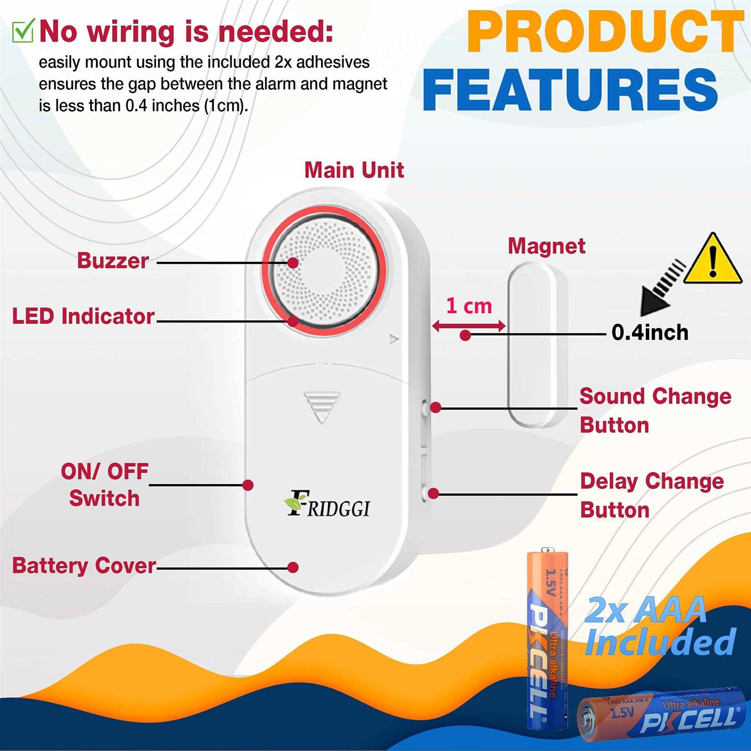 - Protect Kids, Dementia x Alzheimer’s patients when a door is left open or ajar, using regular reminders with adjustable delay and loudness.