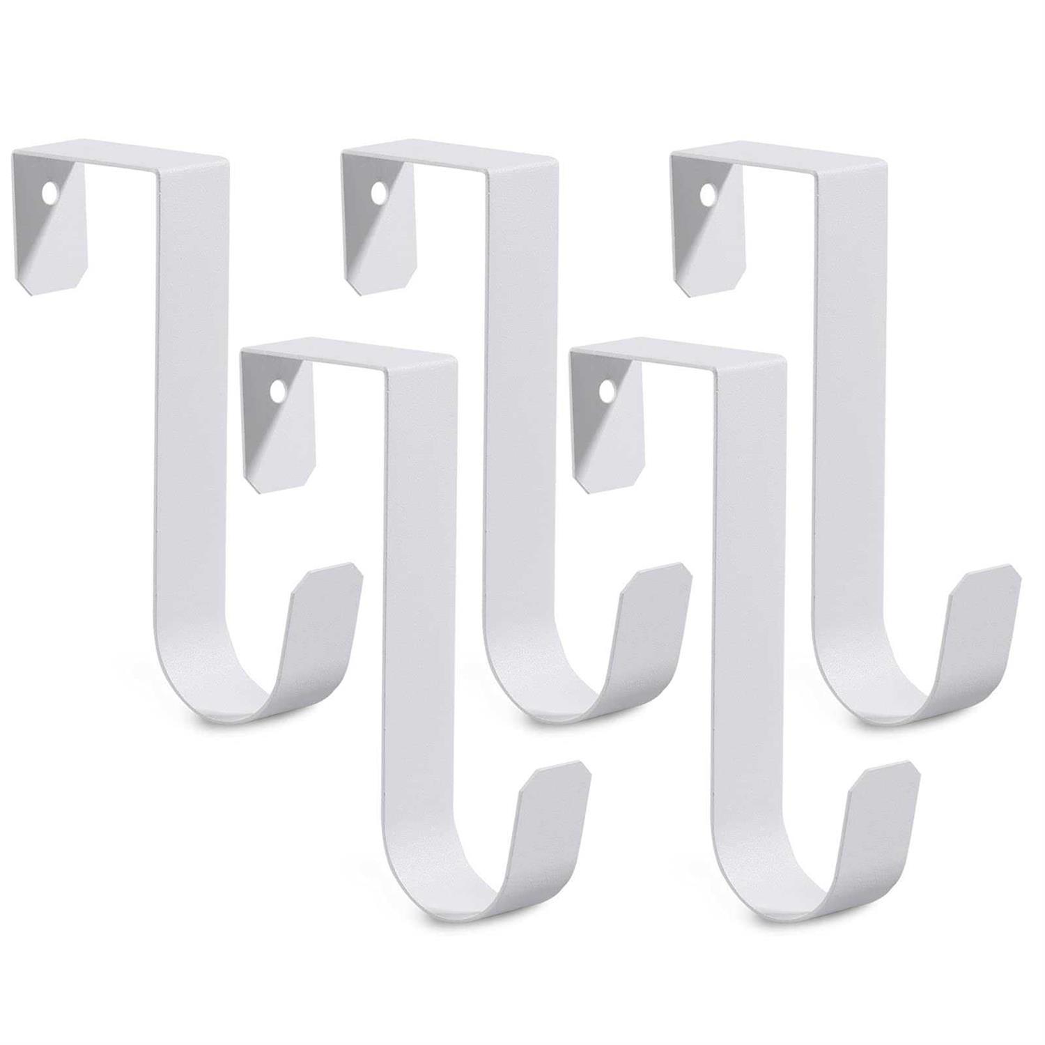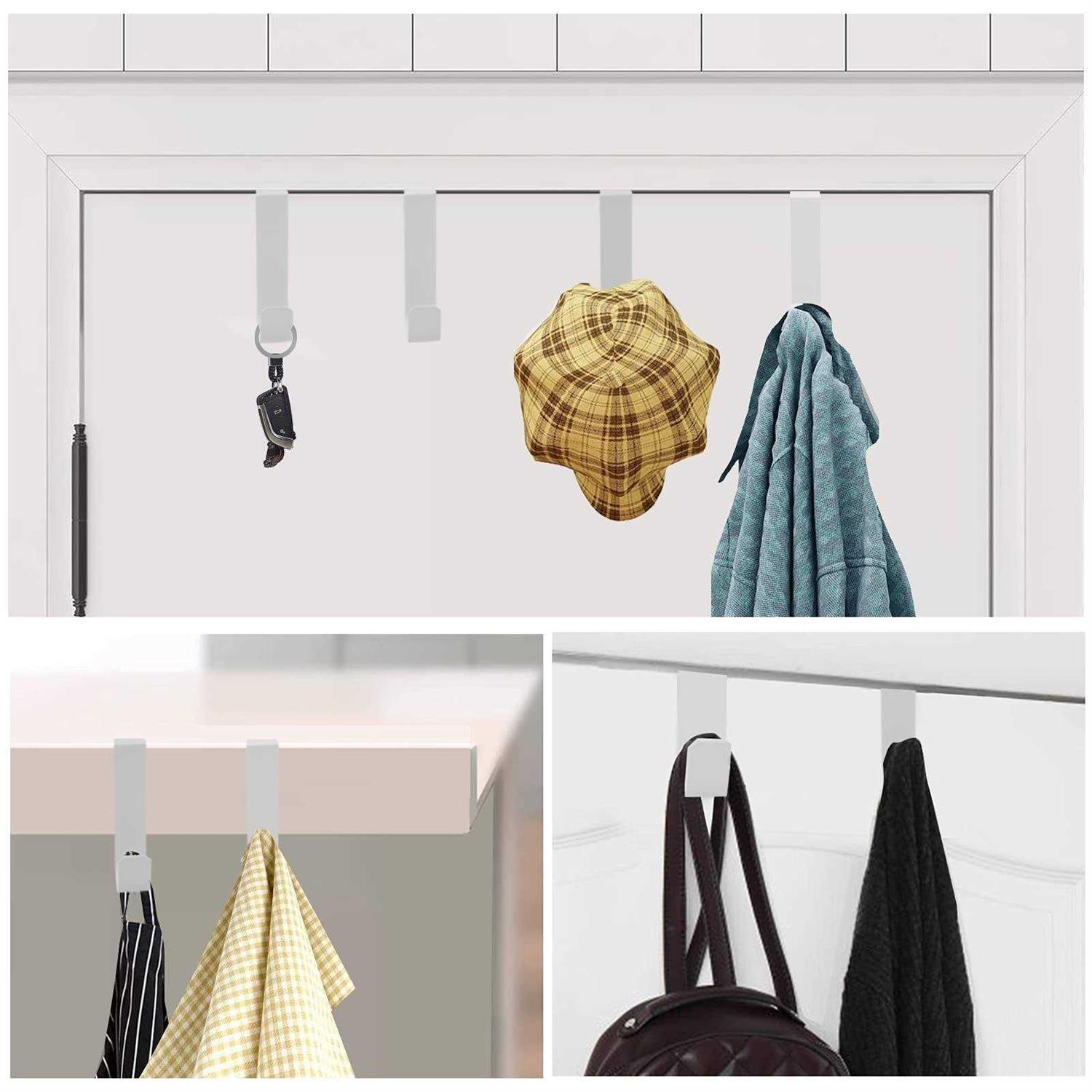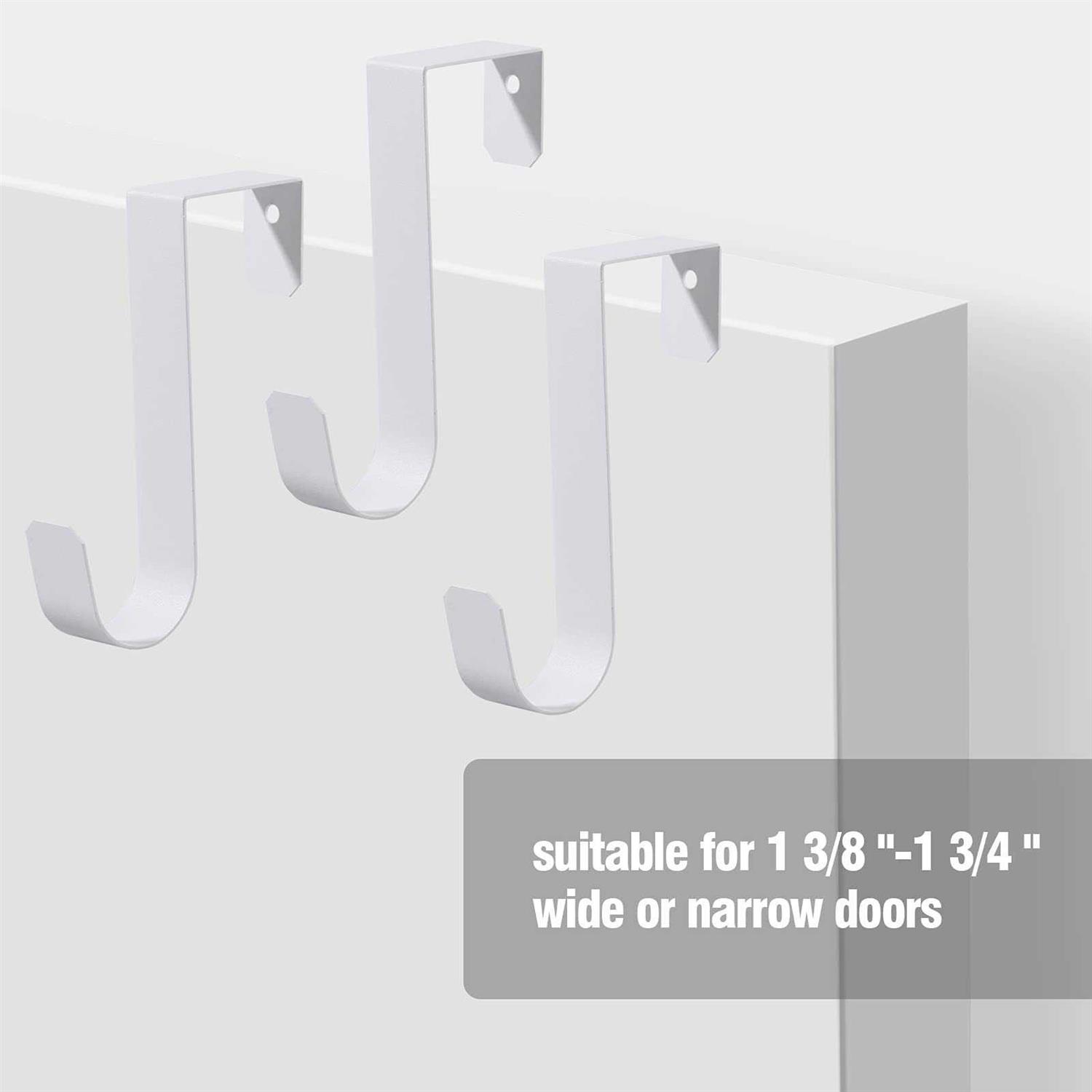 STURDY AND DURABLE: Our over the door hooks are made of high-quality metal, and each door hook that hangs from the door is 4.5 inches tall and can hold up to 7 Lbs. HIGH-QUALITY PAINTING: Static painting on the surface of the door hooks, fine sand surface. Antistatic, not easy to rust. SAVE SPACE: Over the door hooks are suitable for 1.5 “-1.57 “wide or narrow doors and can be used in bedrooms, bathrooms. Keys, clothes, towels, bath towels, etc. Use your space effectively to make your world a cleaner place. EASY TO USE: No hardware required, just five seconds to place the door hook on top of the door. Hook free from nails, easy to disassemble. Use the space effectively raise, make convenient and practical household life. ADVANTAGE: High hardness: The over the door hooks are made of stainless steel, strong and durable. Strong load-bearing: The door hooks can support a weight of 7Lbs. Easy installation: No tools are required. Just hang it lightly on the top of the door. SPECIFICATIONS: Material: Stainless steel Color: White Loading capacity: 7 lbs (3.2Kg) Size: The entire door hooks: Length: 11.5cm/4.5inch Width: 2cm/0.8inch Catch the hook at the end of the door: Length: 3cm/1inch Width: 4.3cm/1.7inch PACKAGE INCLUDE: 4 x white door hooks