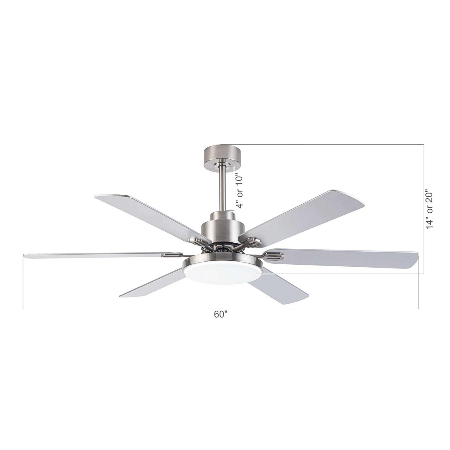 60-Inch Modern Brushed Nickel 6-Blade LED Ceiling Fan with Light and Remote