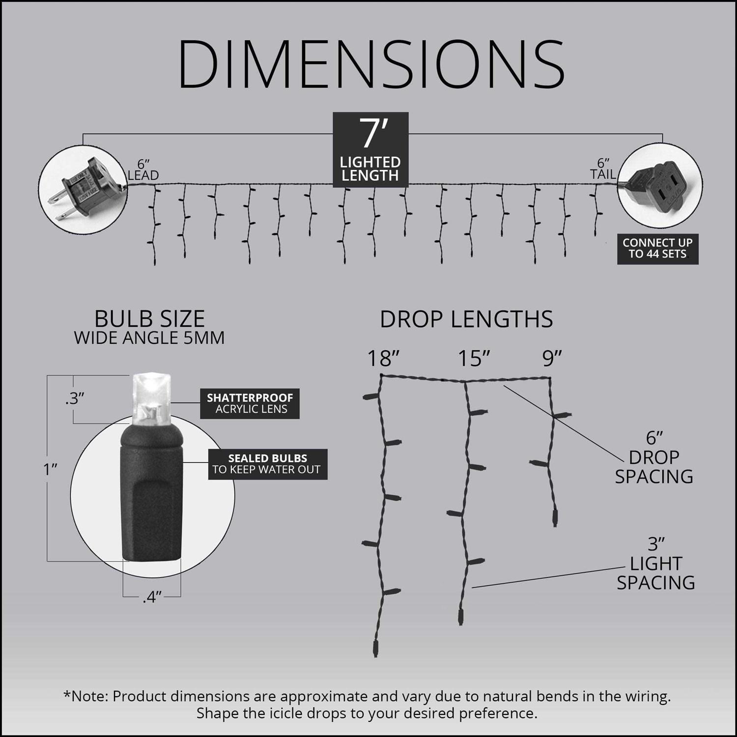 70 5mm White LED Icicle Lights