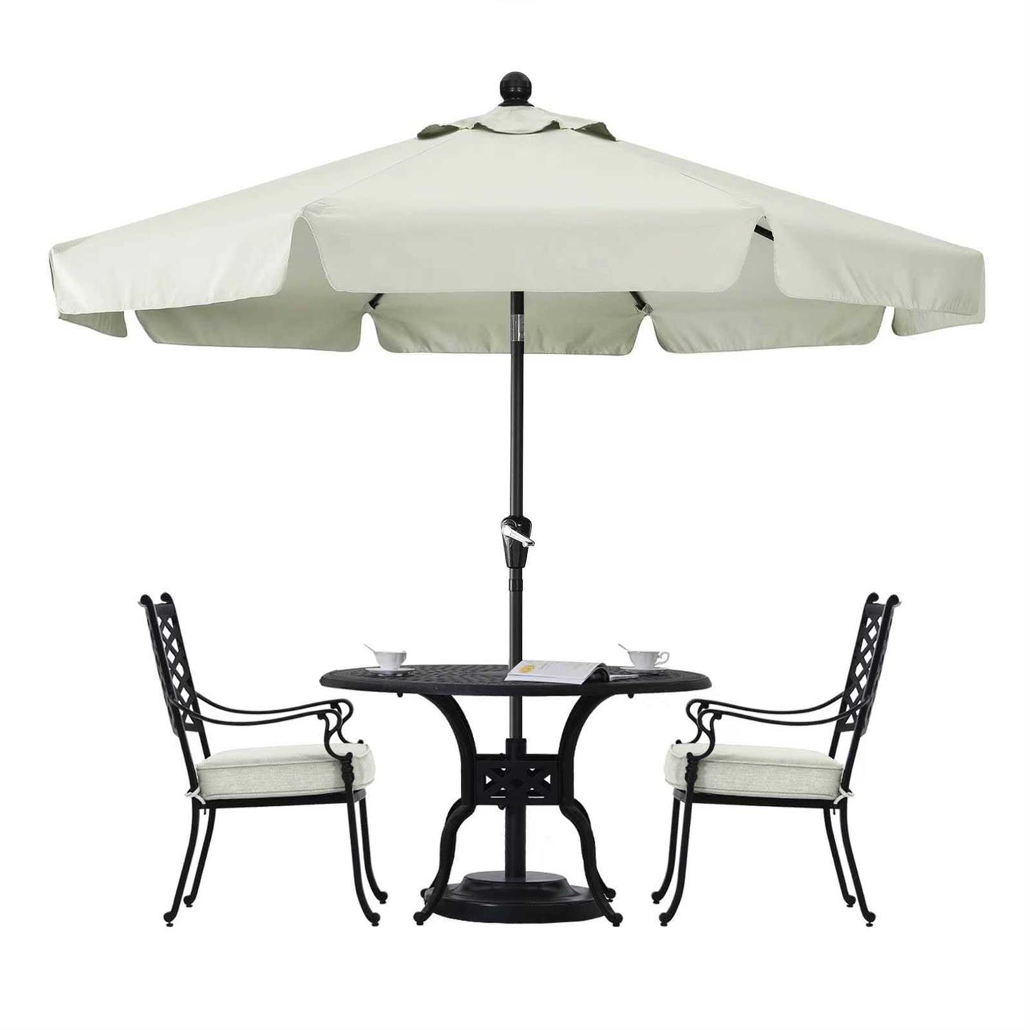 100% Fabric polyester, waterproof, UV protection, high-quality material can be used for many years. Air vented canopy at the top designed for air upward flow which provides greater stability for the sloping patio umbrella and prevents it from being blown over in windy weather. Equipped with simple crank and tilt button. The convenient crank lifting system makes it easy to raise and lower the canopy. Push button tilt for more angles of shading, block the sun well, allowing you and your family to enjoy a cool and comfortable outdoor party or tea time. Anti rust powder coated Aluminum pole and 8 Aluminum ribs for providing good stable support, making it excellent in wind resistance, and also preventing from outer layer peeling. 1.5in diameter strong pole to match your patio table. 7.5 feet diameter is wide enough to your 42″ to 45″ round, square or rectangle table with 2 to 4 chairs, ideal for both residential and commercial locations.( Note:The umbrella base is not included, please purchase separately if you need it) The classic style is suitable for a wide range of occasions, with shading and decoration, umbrella canopy with scalloped edges provides perfect shelter and decoration for your patio, garden, deck, swimming pool and beach,entertaining, cafe, picnics, Barbecue , garden parties, beach, camping.