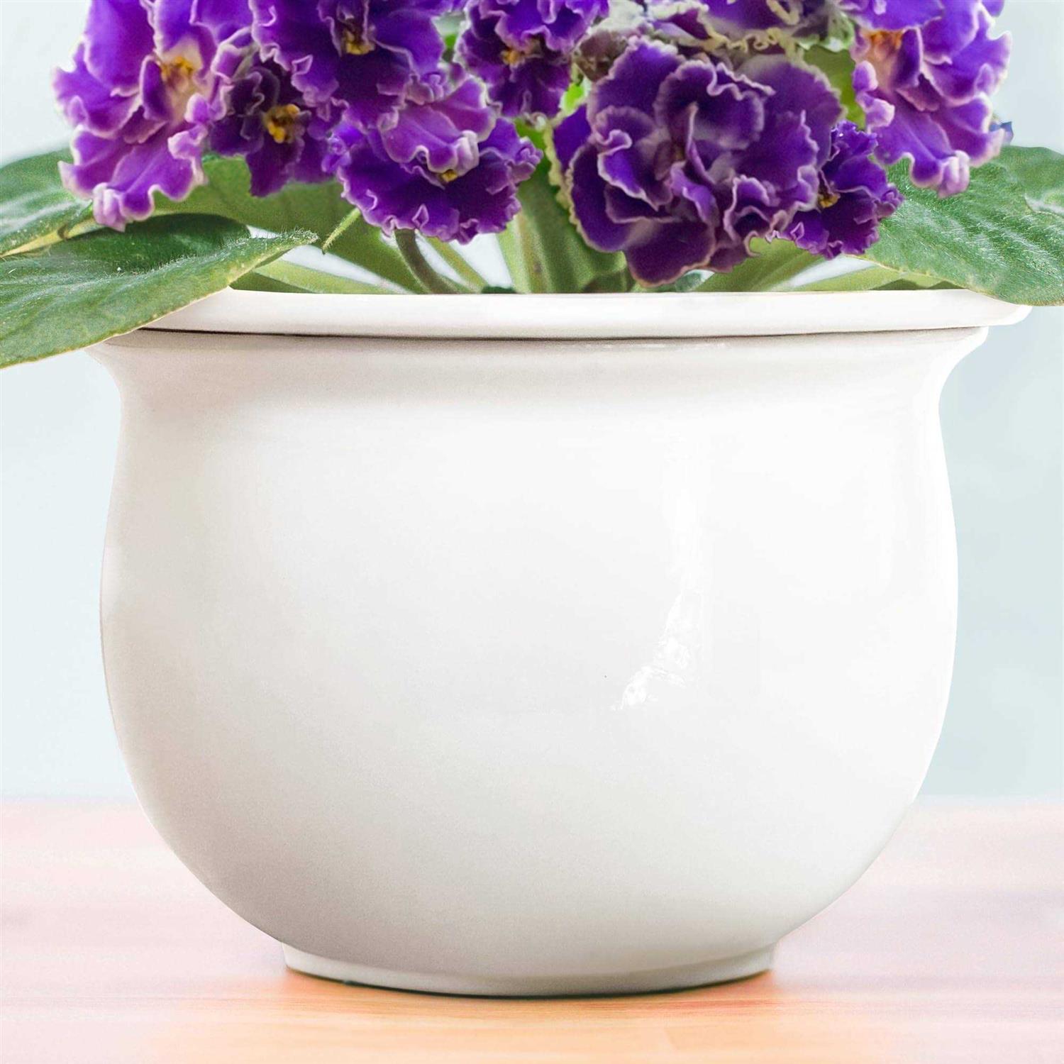 African Violet Pots Ceramic 6.5”W x 4.6”H Self Watering Planter for Indoor Flowers and Plants –