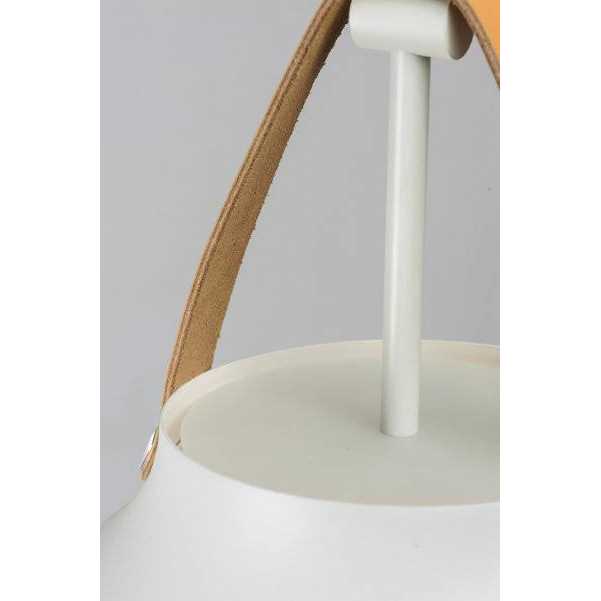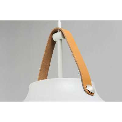 A leather strap adds organic, Scandi-inspired warmth to the simple silhouette + neutral finish of this pendant light. Built from aluminum, the dome shade hangs at an adjustable height from a sloped ceiling-compatible canopy. Install it with a dimmer switch for adjustable ambiance.