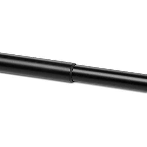 Tension curtain rod for showers, bathtubs, closets, windows, changing areas and more Includes a curtain rod made of lightweight metal with a black finish Adjustable length rod from 107 to 185.4 cm, fits a variety of spaces 2.54 cm rod diameter capable of handling moderately heavy fabrics; can hold up to 9.07 kg Rubber end caps for traction and a sturdy hold; no drilling or holes required Product dimensions: 185.4 x 3.8 x 3.8 cm (L x W x H)