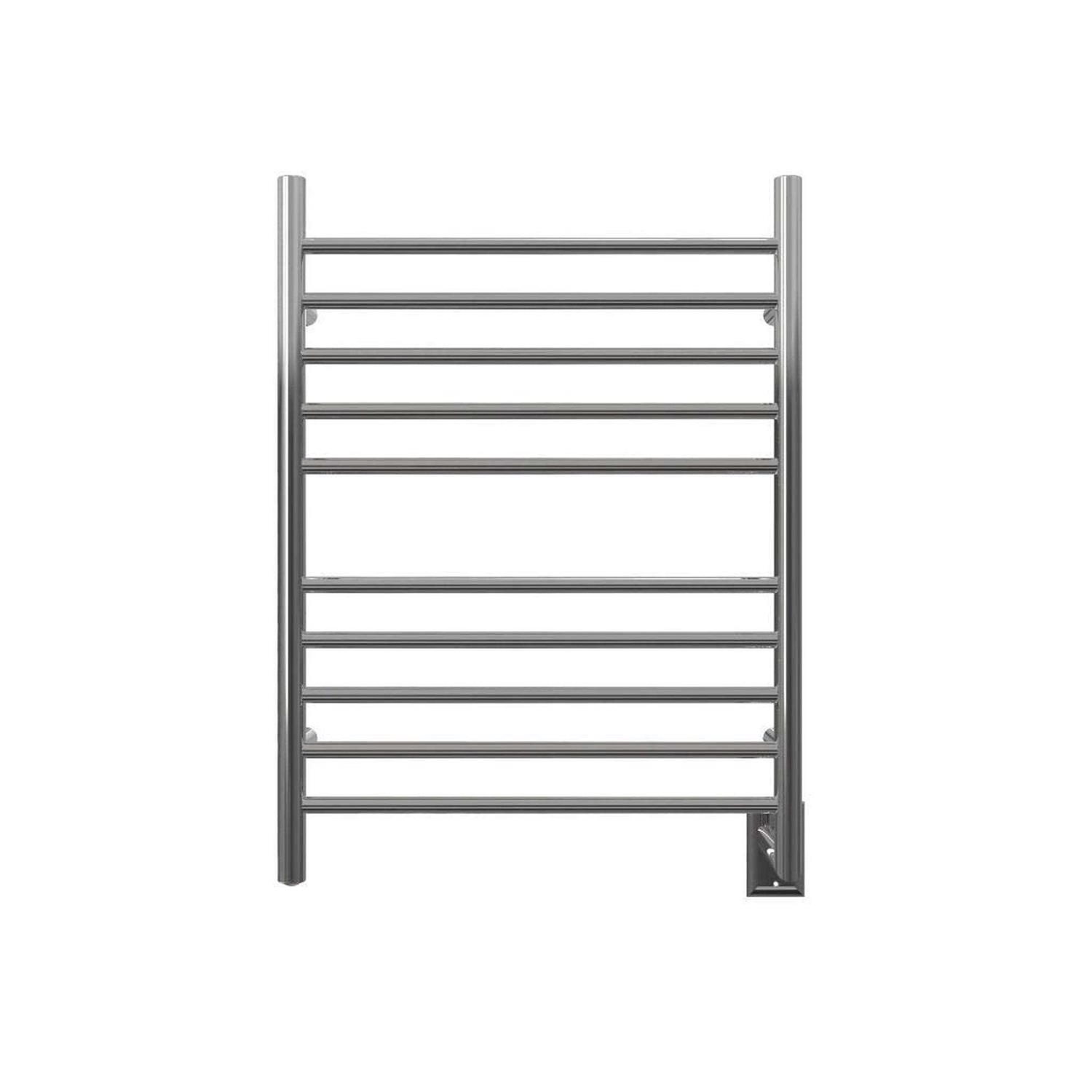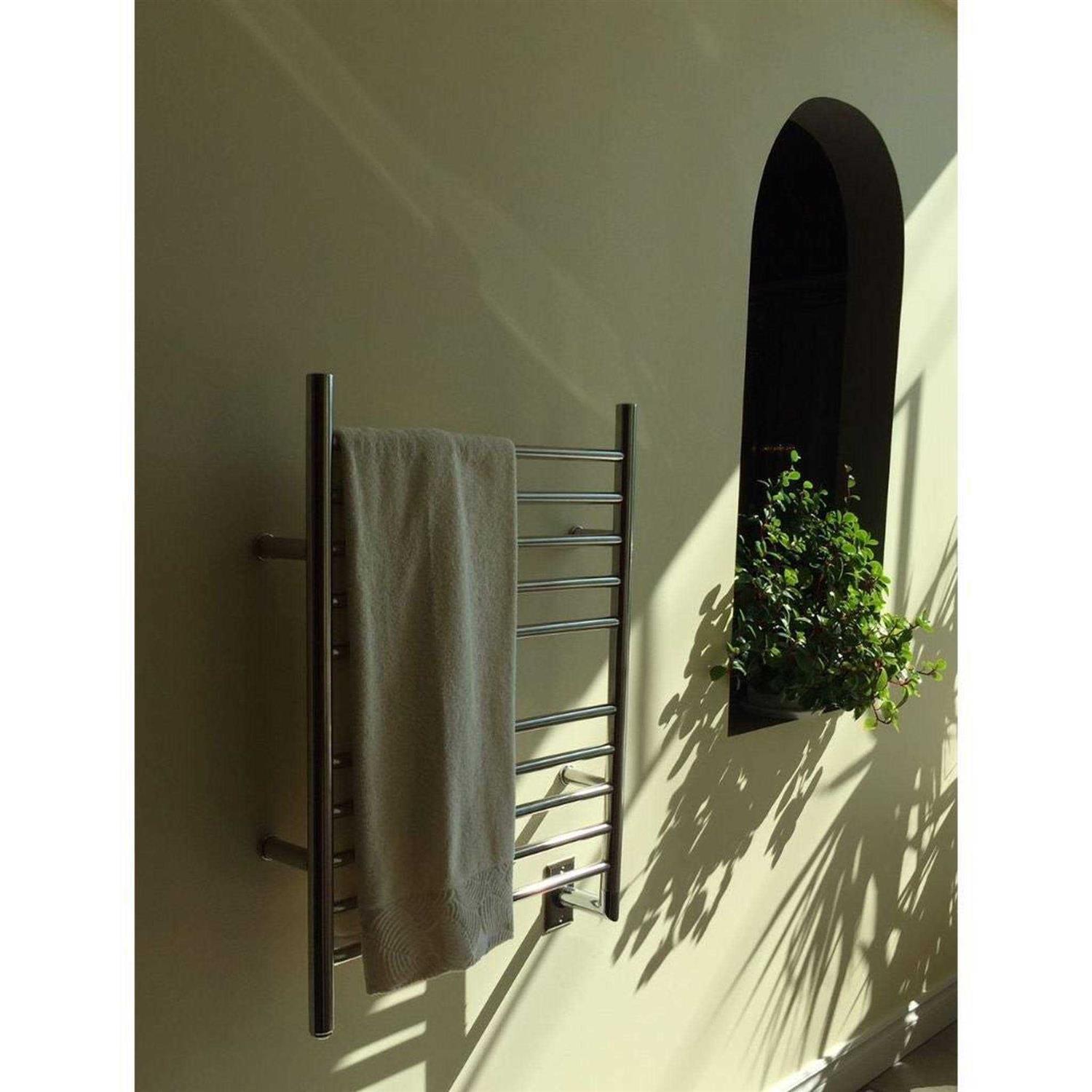 The Amba Radiant Hardwired towel warmer is a great addition or upgrade to any bathroom, laundry room or mud room. Round bars give the unit a clean look that can fit a variety of design styles. The gentle heat is ideal for warming and drying towels, as well as other articles of clothing that cannot be tumble dried. With 10 total bars, the unit is designed to accommodate 2 towels. Color: Polished Stainless Steel. Size: 23.63″ W x 4.75″ D x 31.88″.