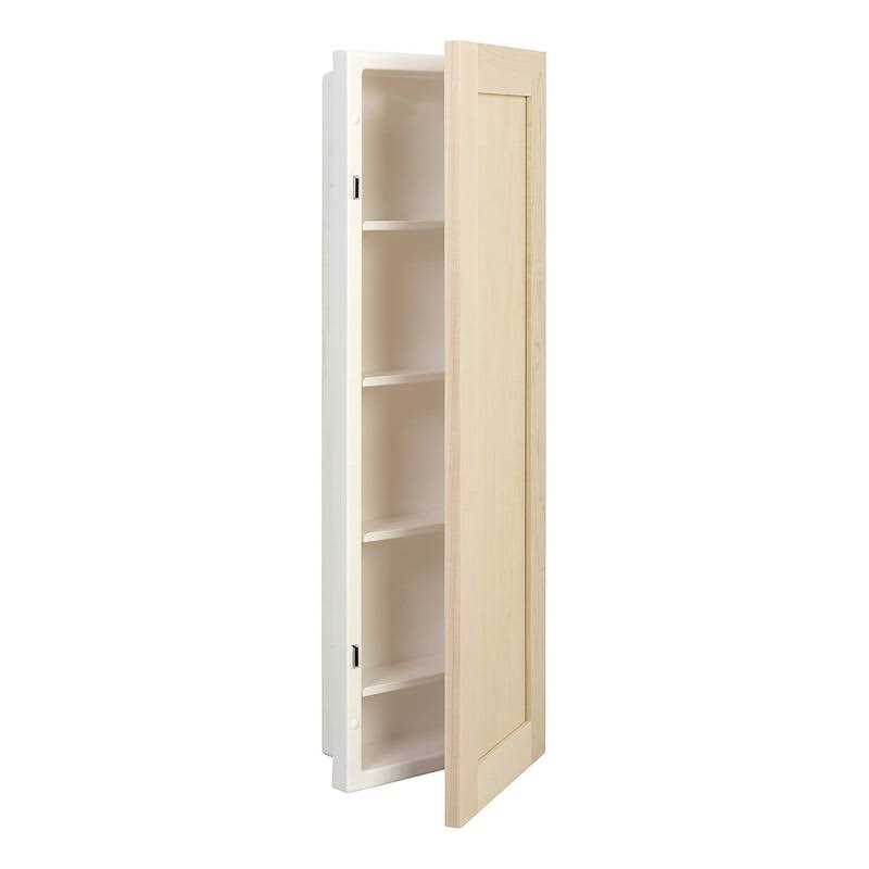 American Pride offers a wide variety of medicine cabinets in various styles, finishes, and functions. Recessed mounting Magnetic catch with striker plate Four adjustable shelves, one fixed shelf Cabinet Made from molded plastic Single Piano hinge