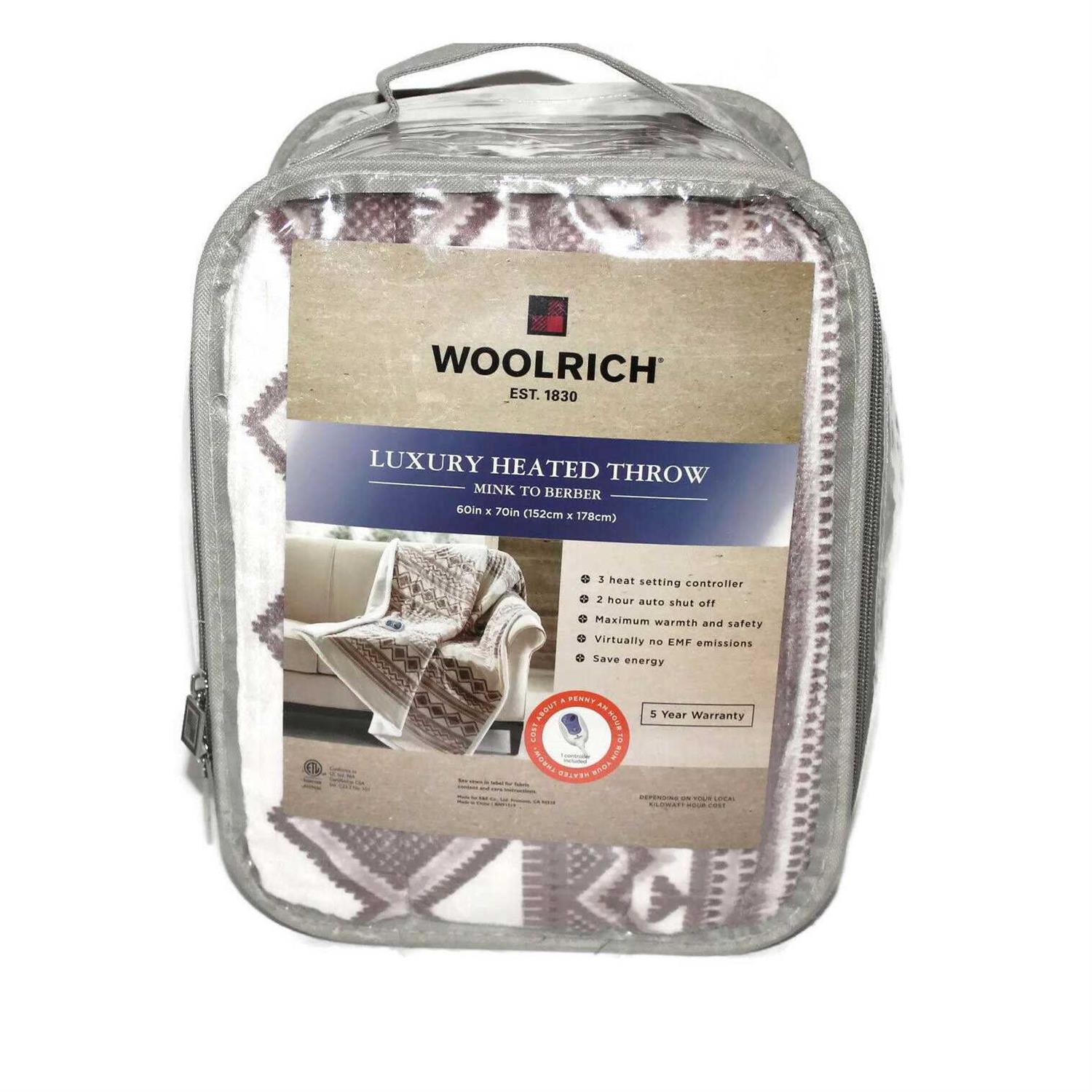 The Woolrich heated throw utilizes state of the art secure comfort heated technology that adjusts the temperature of your throw based on overall temperature, spot temperatures and the ambient temperature of your room, ensuring a consistent flow of warmth. This unique technology also emits virtually no electromagnetic field emissions, so you can snuggle up with confidence. This throw is oversized, nearly a foot larger in the length and width compared to standard heated throws. The ultra soft plush fabric and the lofty Berber reverse creates a cozy, comfortable throw. Featuring 3 heat settings, this throw is machine washable for easy care.