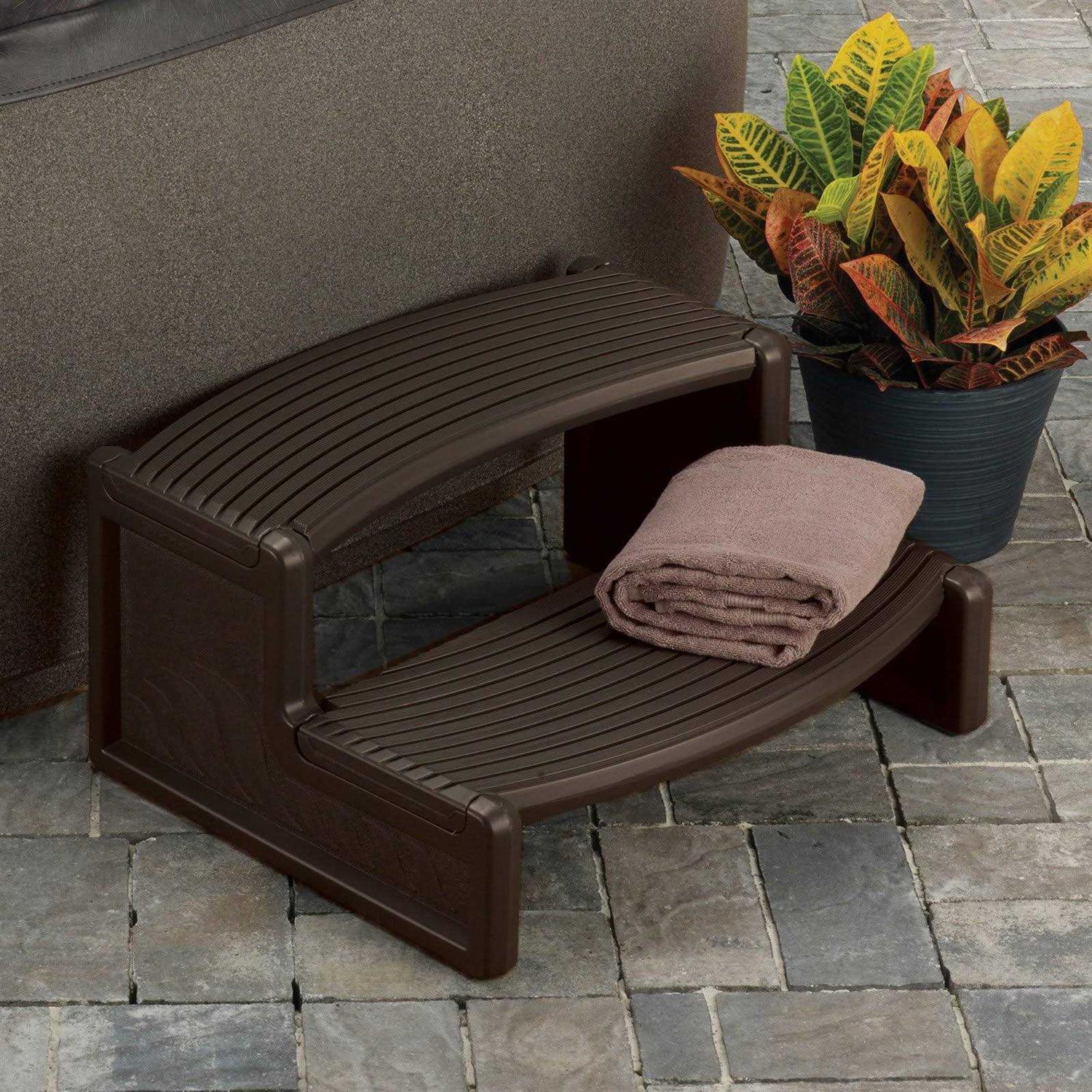 Two-tiered step for getting in and out of spaDurable plastic constructionSafe non-slip designAvailable in gray and espresso. Enter and exit your Aqua Rest spa easily and safely with the AquaRest Economy Step. This two-tiered step is great for use with any AquaRest spa and features non-slip steps so you can walk with confidence. The durable plastic design is built to last and is available in your choice of gray or espresso.