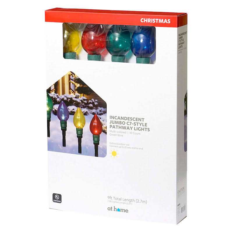 Festively line any driveway or walkway with our 10-count multicolor oversized C9 Christmas bulb lawn stakes.