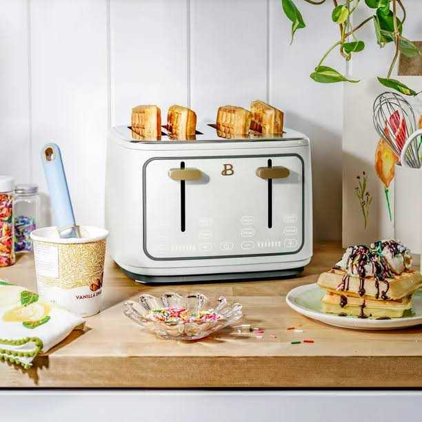 Make mornings easier. The Beautiful 4-Slice Toaster with Touch Activated Display features 7 settings and a browning control with convenient preset buttons, including Gluten-Free, Frozen and Reheat. Its extra wide self-adjusting slots fit a variety of breads and bagels, while an LED countdown ensures that you never burn your bread again. Thoughtfully designed with sleek touch-activated illumination and our signature gold accents, the Beautiful Toaster is made for your kitchen and your lifestyle. Created by Drew Barrymore, Beautiful Kitchenware combines elegant design, contemporary colors and modern silhouettes for high-performance appliances that look beautiful on your kitchen counter.