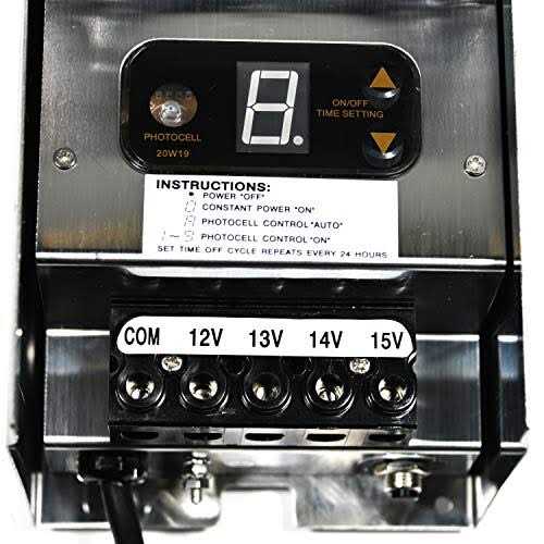 Best Pro Lighting’s low voltage professional grade landscape lighting 300-Watt transformer with stainless steel housing multi tap 12-Volt 13-Volt 14-Volt 15-Volt photo cell and timer. The Stainless Steel 300-Watt transformer which comes with a digital display for easy programming will turn your lights on at dusk with an option of waiting 1-9 hours to turn them off Auto to use from Dusk to Dawn or with an option of constant On to override the photo cell and connect it to a plug in timer. Best Pro Lighting’s 300-Watt transformer can be used both indoors and outdoors and is compatible with both halogen and LED bulbs. This 300-Watt transformer is UL Listed and has AC output. This low voltage transformer’s usage is for low voltage landscape lighting fixtures. not included.