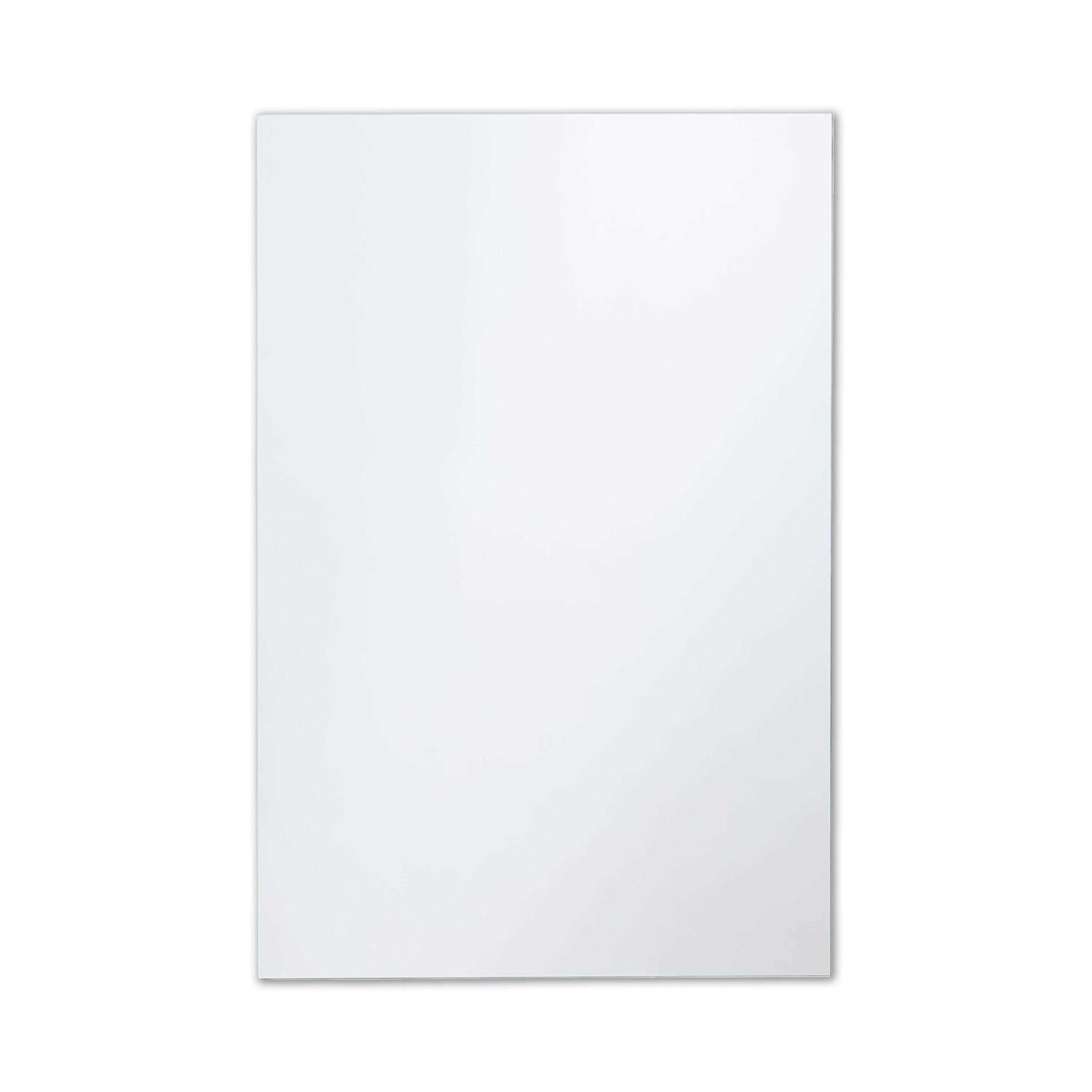 Classic, frameless, rectangular design is both simple and sophisticated, making a statement over any bathroom vanity or on any wall in your home. Ultra-flush hanging system installs in 10 minutes or less, and all hardware is included for a safe, secure, vertical or horizontal installation. Finely crafted, pencil-polished edges ensure safe handling and a finished appearance. Authentic 1/4-inch thick glass eliminates reflection distortion, and premium silver backing improves durability in high-humidity environments. Designed, assembled, and packaged in the USA, and backed by 65+ years of mirror expertise. Installation manual, care guide, screws, and drywall anchors are all included.