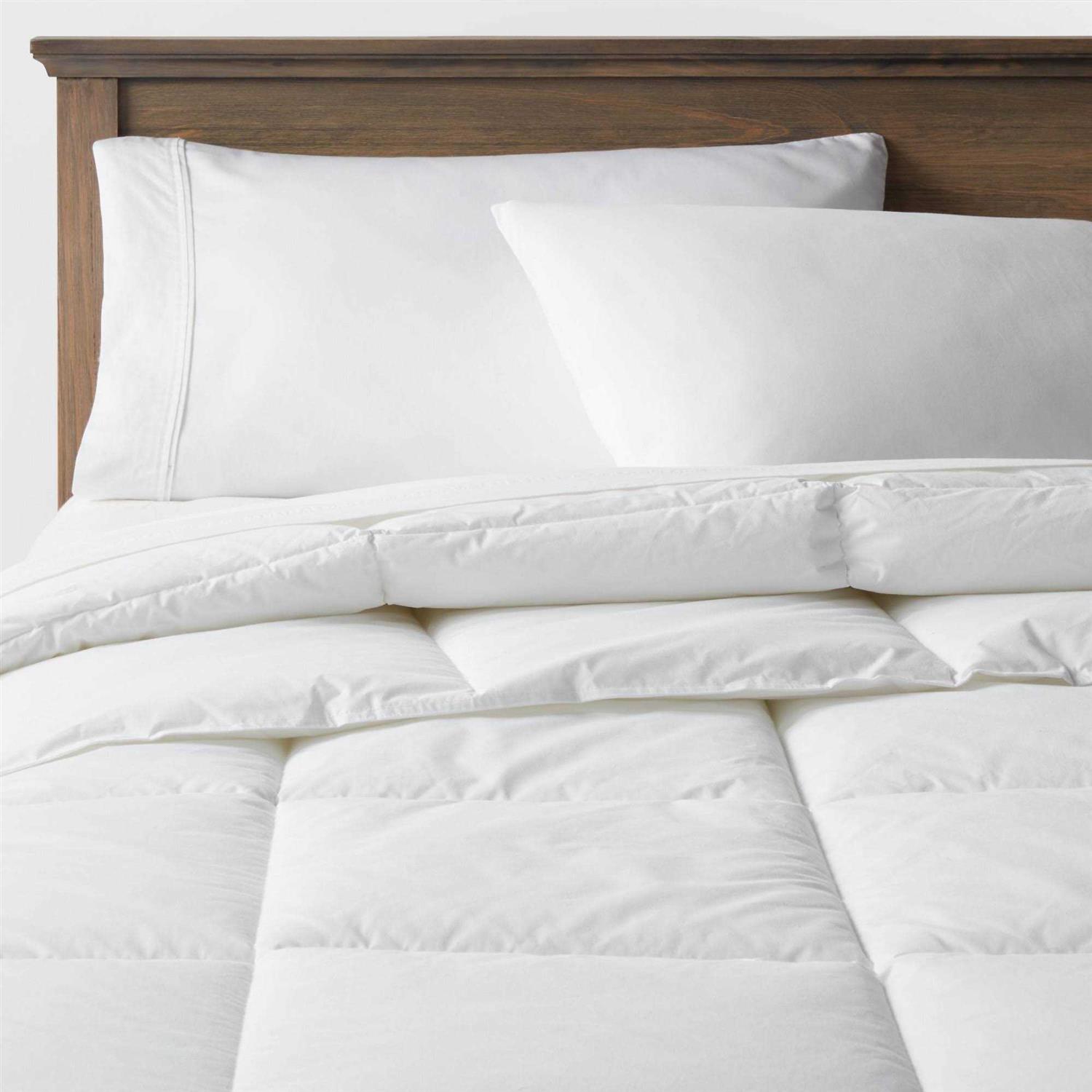 Float off to sleep in luxurious comfort with this Performance Down Alternative All-Season Duvet Comforter Insert from Threshold . This box quilted duvet comforter insert is made from cotton-blend fabric with luxurious filling, and the allergen barrier moisture-wicking fabric keeps you in cool comfort night after night. The corner anchoring ties and secure corner tabs help the duvet cover stay in place, while the stain-release treatment makes for easy cleaning all year long. Pair it with bedsheets to enhance the clean, sophisticated look, then top with pillows of your choice to finish a lovely bedscape. Threshold : Looks like home, feels like you. Size: Full/Queen. Color: One Color.