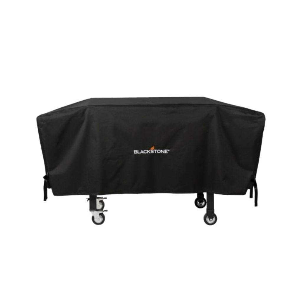 Don’t let the great outdoors suck the life out of your outdoor griddle. With the Blackstone Outdoor Soft Cover for Griddles you can keep your favorite cooking toy out of the elements and ready for your next barbecue. Wind rain and varying temperatures can wreak havoc on an unprotected outdoor griddle. This softcover is made from 600 D polyester with reinforced stitching to create a tight weather-resistant shell that keeps snow and water from soaking your griddle top. The thick fabric also protects your griddle surface from flying debris that could scratch or damage your cooking accessory. With this cover you don’t need to worry about hauling your griddle in and out of your backyard shed each time you want to use it. You can be confident that this heavy-duty cover will secure your griddle in your backyard. Use the plastic cinch clips to keep this cover tightly secured. This grilling accessory is sized to fit 36-inch top griddles as well as over any hood that may protect your cooktop. Keep your griddle out of the elements. The Blackstone Outdoor Soft Cover for Griddles is the easy-to-use solution for sheltering your go-to outdoor cooking tool.