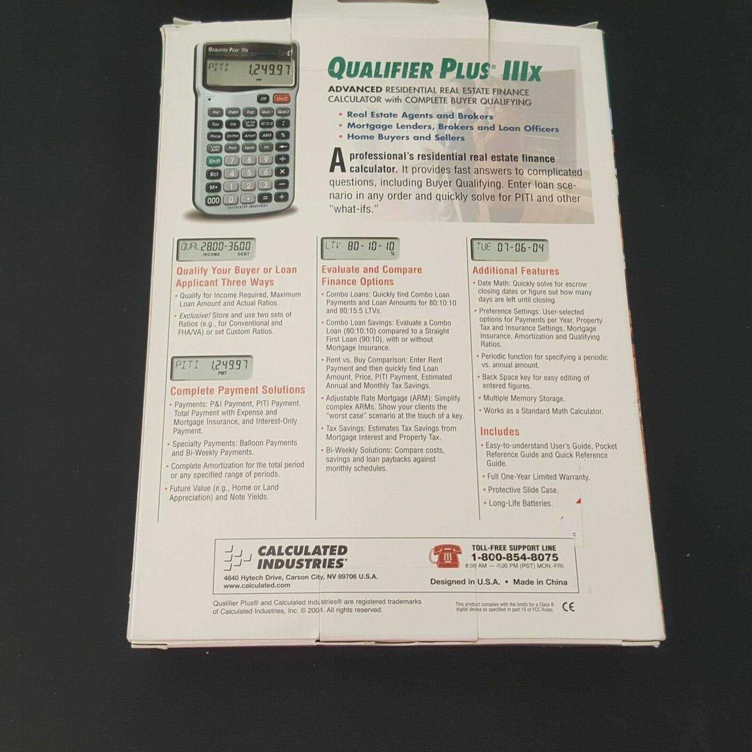 With the Qualifier Plus IIIX you can pre-qualify clients quickly and easily. . Versatile Buyer Pre-Qualifying for Conventional and FHA/VA Loans. – Amortization with Remaining Balances. – Future Value, Property Appreciation. – Complete Payment Solutions Including PITI, Interest-Only, Bi-Weekly Loans, ARMs. – Calculate Combo Loans (80:10:10), 80:15:5). Calculated Industries Qualifier Plus IIIX 3415 Advanced Real Estate Finance Calculator