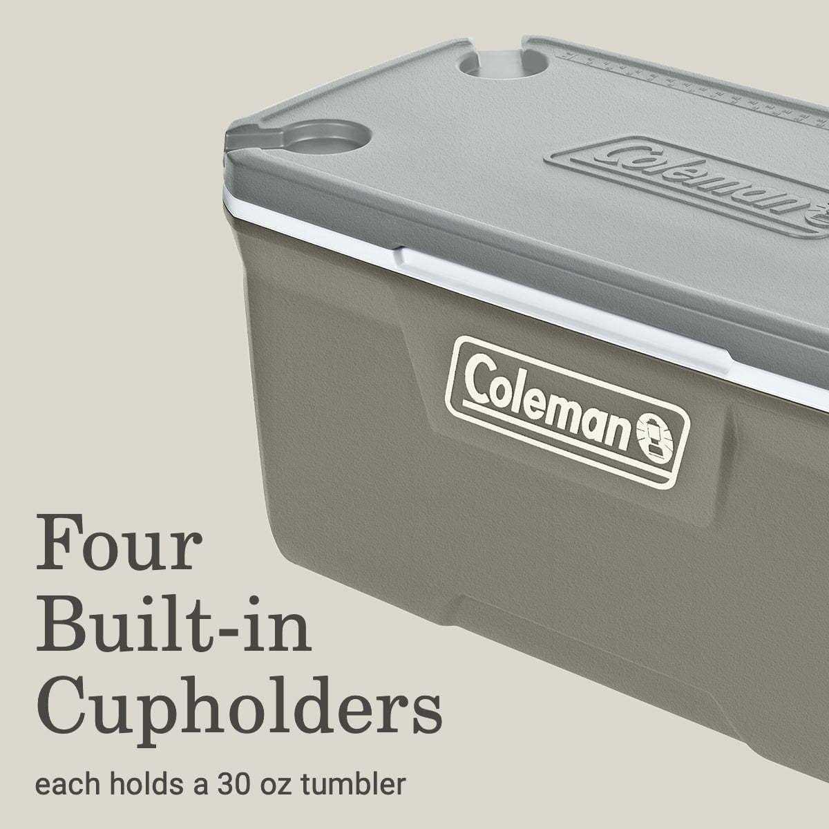 Inspired by our Wichita roots and the people who work there, the Coleman 316 Series of hard coolers brings uncompromising quality and a legacy of craftsmanship and adventure wherever you take them. Food and drinks stay chilled longer with the Coleman 316 Series 120QT Hard Chest Cooler, 38 in, Silver Ash, which Keeps the Ice up to 6 days. Carrying a full load? Enjoy easier lifting with the swing-up side handles, then have a seat on the closed lid. Not to worry, cup holders built into the lid will keep your drink close and prevent spills. With room to fit up to 102 cans with up to 60lbs. of ice, go ahead, invite more friends and family to barbecues, tailgate parties, or camping trips.