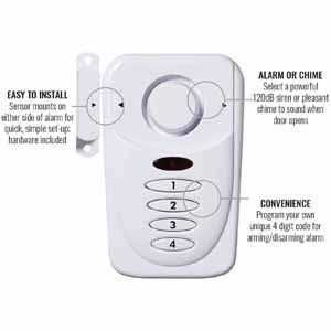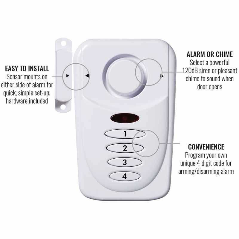 - KEYPAD DOOR ALARM PREVENTS ACCIDENTAL ACTIVATION: Alarm is secured by 4-digit PIN of your choosing with entry/exit delay setting; no key fob required