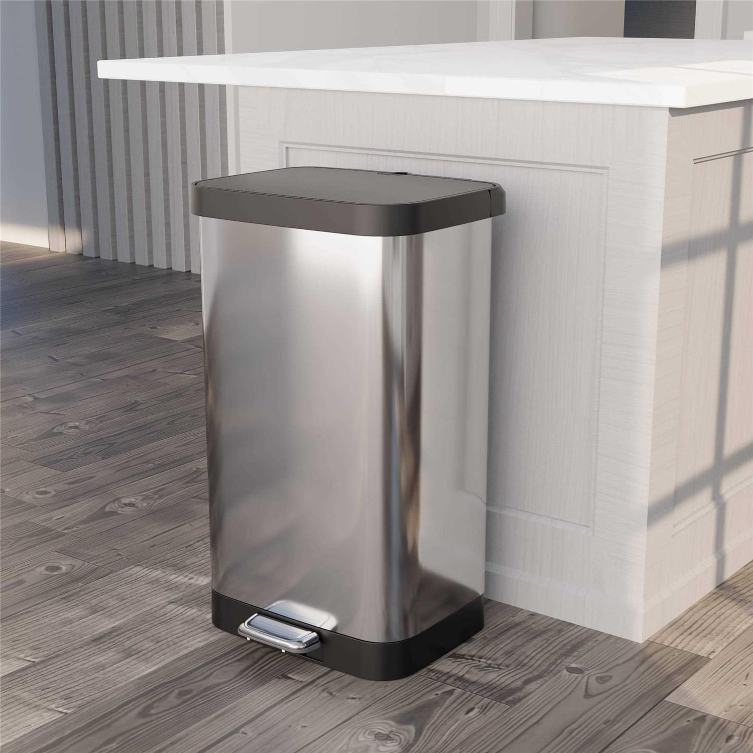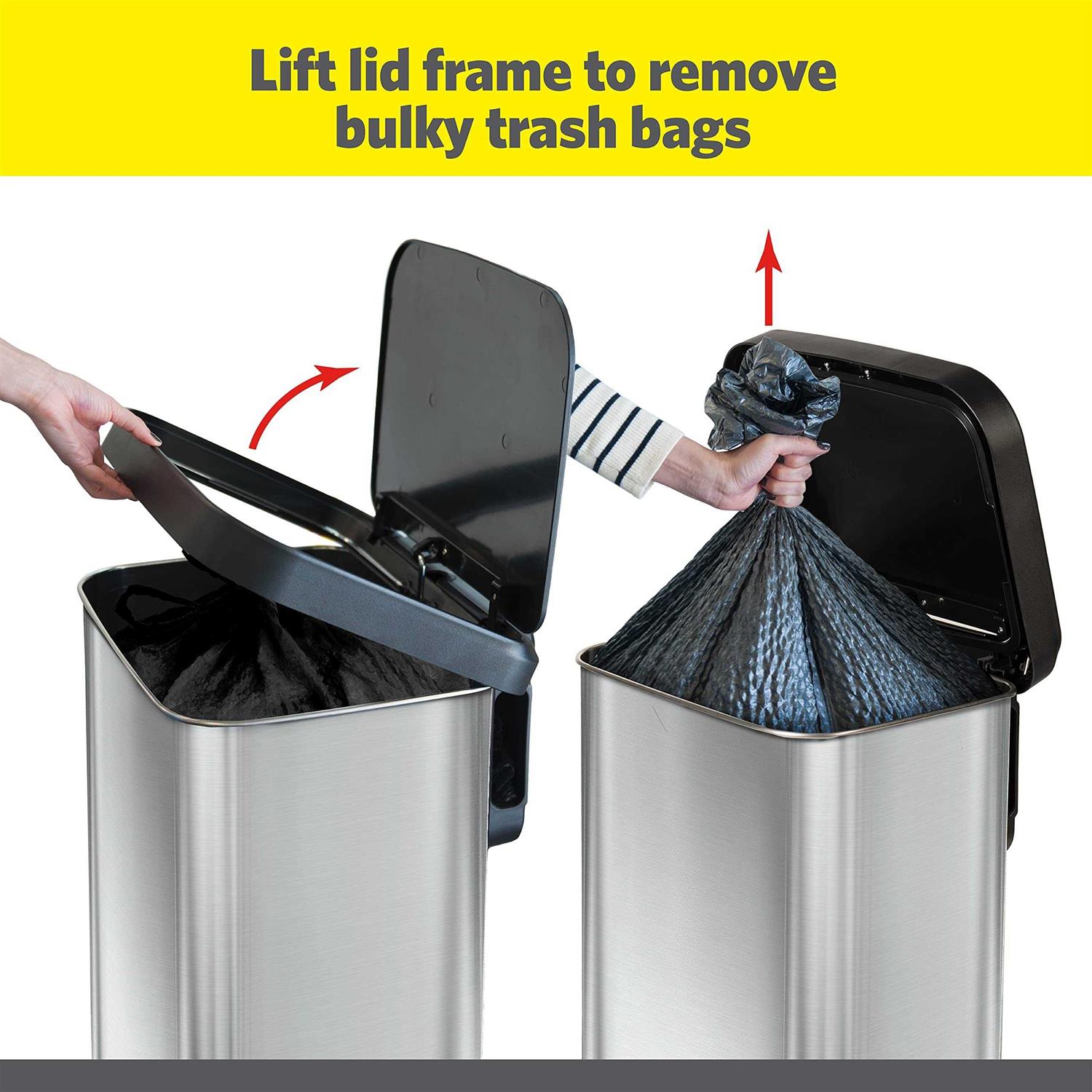 The 20 Gallon size has the extra capacity that fits 50% more trash which means less trips taking out the trash. It is the perfect can for the largest indoor trash bag in America. Glad Stainless Steel Step Trash Can offers CloroxTM antimicrobial protection of the lid and lid frame by inhibiting growth of odor causing bacteria for the life of the can. Save time by storing extra bags at the rear bag compartment of your Glad Stainless Steel Step Trash Can. You can easily dispense the trash bags from the sides while the can stays in place. With Glad Stainless Steel Step Trash Can, the complete lid and frame hinge and stay open while you take out the trash bag from the can. The Glad Stainless Steel Step Trash Can provides a convenient and quiet step operation with a controlled gentle closure. Fingerprint resistant so your can looks shiny and elegant all the time.