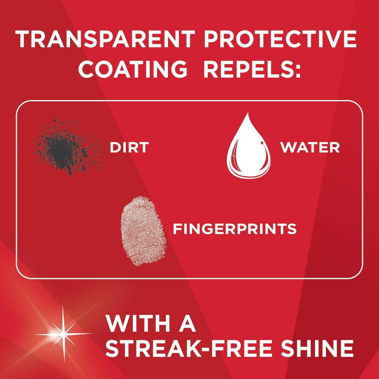 - Transparent, protective coating repels dirt, water x fingerprints