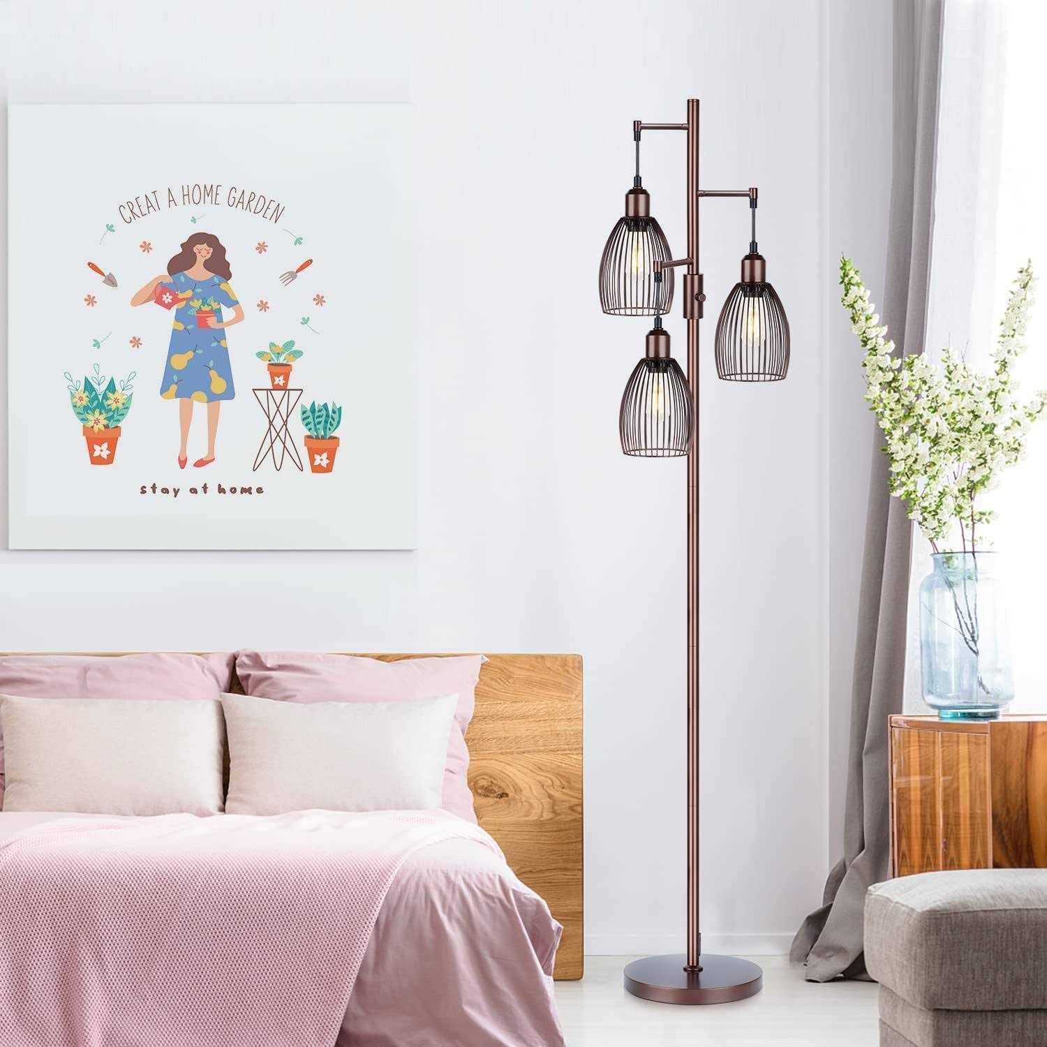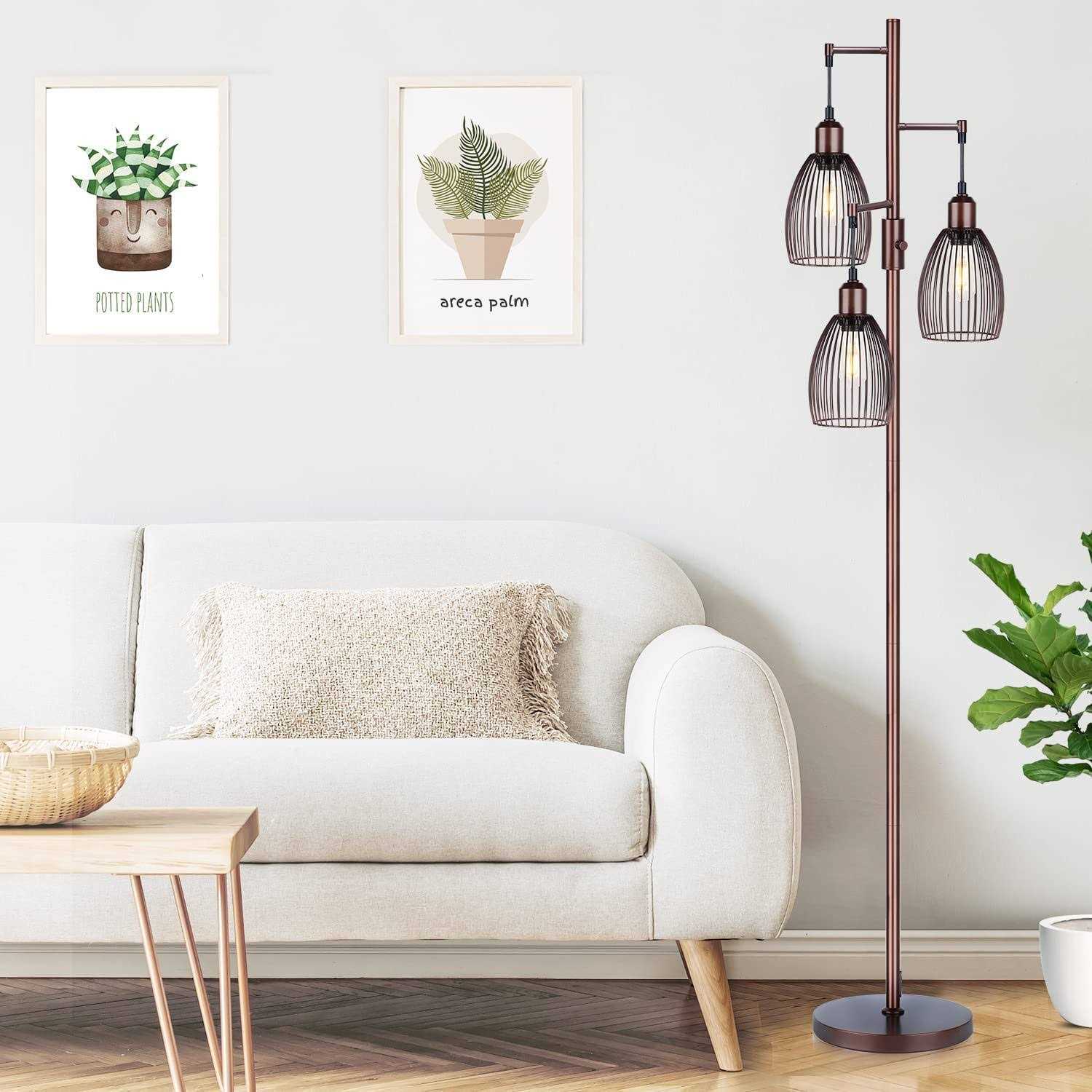 【70 Inches Floor Lamp】 70 inches height, this industrial floor Lamp with Metal Base diameter 9.8 inches. 6.17ft long power cord makes it easy to put your LED floor lamp anywhere. The farmhouse floor lamp is specially built with a heavy, stable base and lamp pole to ensure it keep standing steadily even on the carpet. Strong holding pole, No Bending No Leaning. Sturdy Pole Heavy Base Stable & Firm. 【Updated Stepless Dimming( 0-100% ) Floor Lamp】Unlike the traditional non-dimmable floor lamps for living room, our dimmable floor lamp is fully Stepless Dimmable. Just simply twist it and then you can adjust the industrial floor lamp in the brightness range of 0 to 100% according to the needs of different scenes. Perfect for general indoor areas which including Dining room, Living Room, Bedrooms, Office, Kitchen, Corridor, Cafe, Basement, Bar, Club, Restaurant, Library and Reading Room. 【3 x 800 lumens LED Bulbs Included】Our floor lamps are designed with 3 E26 lamp holders. Compatible with a variety of normal E26 LED, CFL, incandescent and halogen bulbs etc(Dimmable Bulb Only). This set comes with an E26 base bulb, 25,000 hour bulb life, 6W(60W equivalent), 800 lumens, 2700K (warmwhite), No flicker or buzzing. 【Elegant Appearance】With design of the elegant, simple black metallic construction make the tall tree lamp well matched to styles of industrial, vintage and farmhouse furnitute. The special birdcage lampshade makes it ideal for multiple styles of decoration, such as minimalist, industrial and mid-century. The multi-head design cage shade lampshade brings soft warm light you need and adds decorative effect to your room. The package includes everything needed for assembly; no other tools needed for installation!