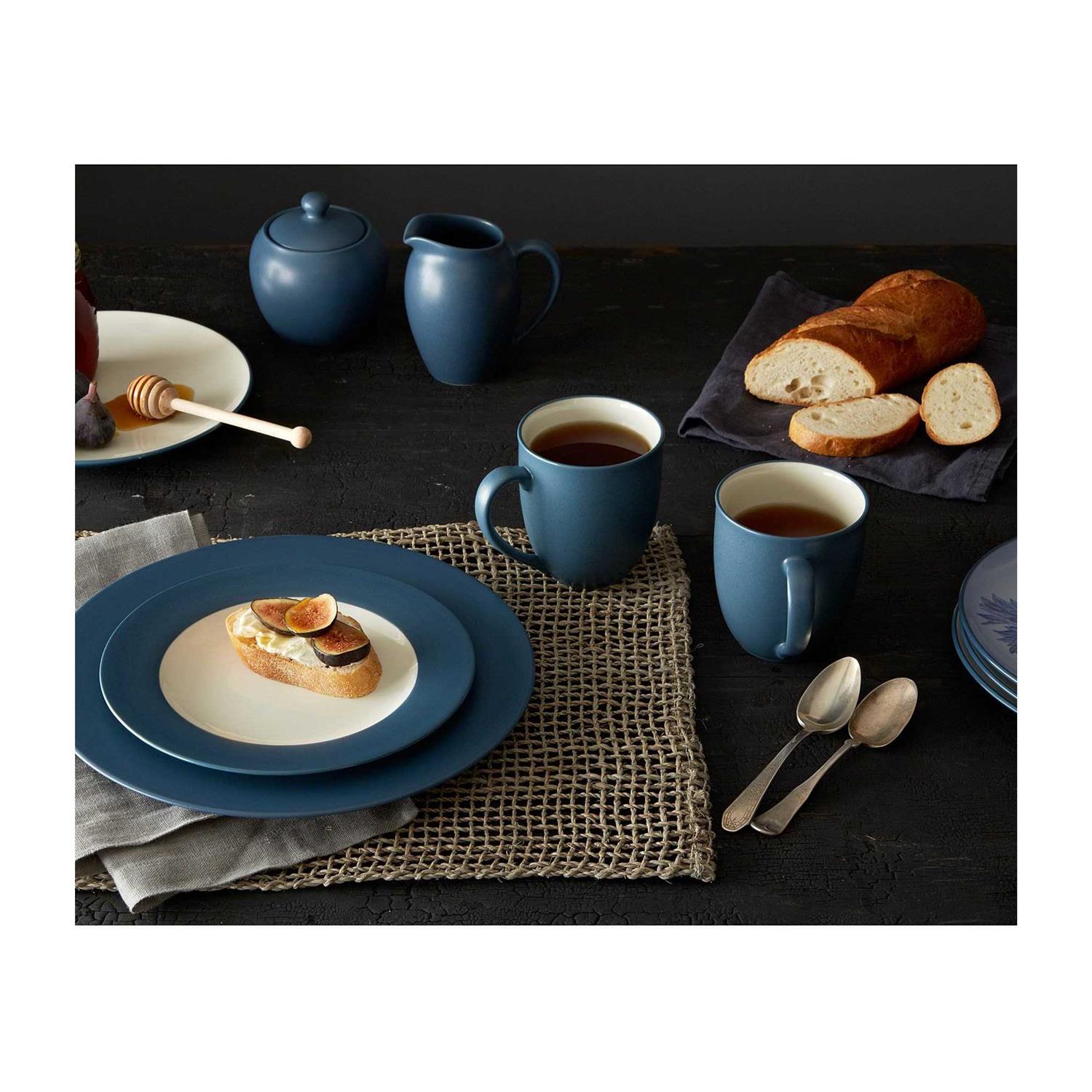 Colorwave by noritake has a matte-textured, deep coloration on the outside suggestive of the deep sea, blueberry pie, sapphires and the midnight sky and a glossy cream-colored glaze on the inside. Mix and match the different shapes available in coupe, rim and square and add a splash of color to your table. The 4-piece set includes a dinner plate, salad plate, soup/cereal bowl and mug.