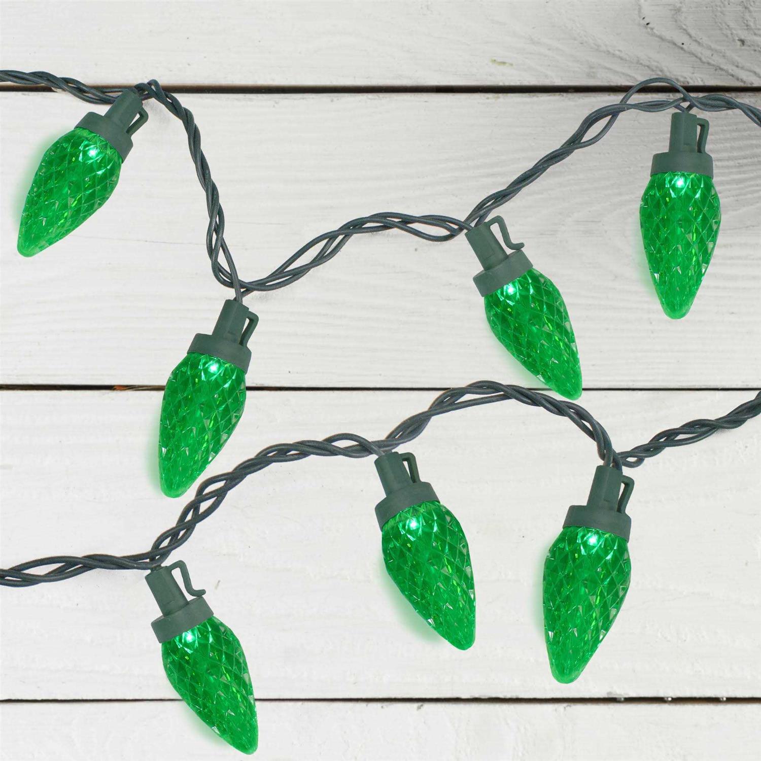 50ct Green LED Faceted C9 Christmas Light Set, 20.25ft Green Wire