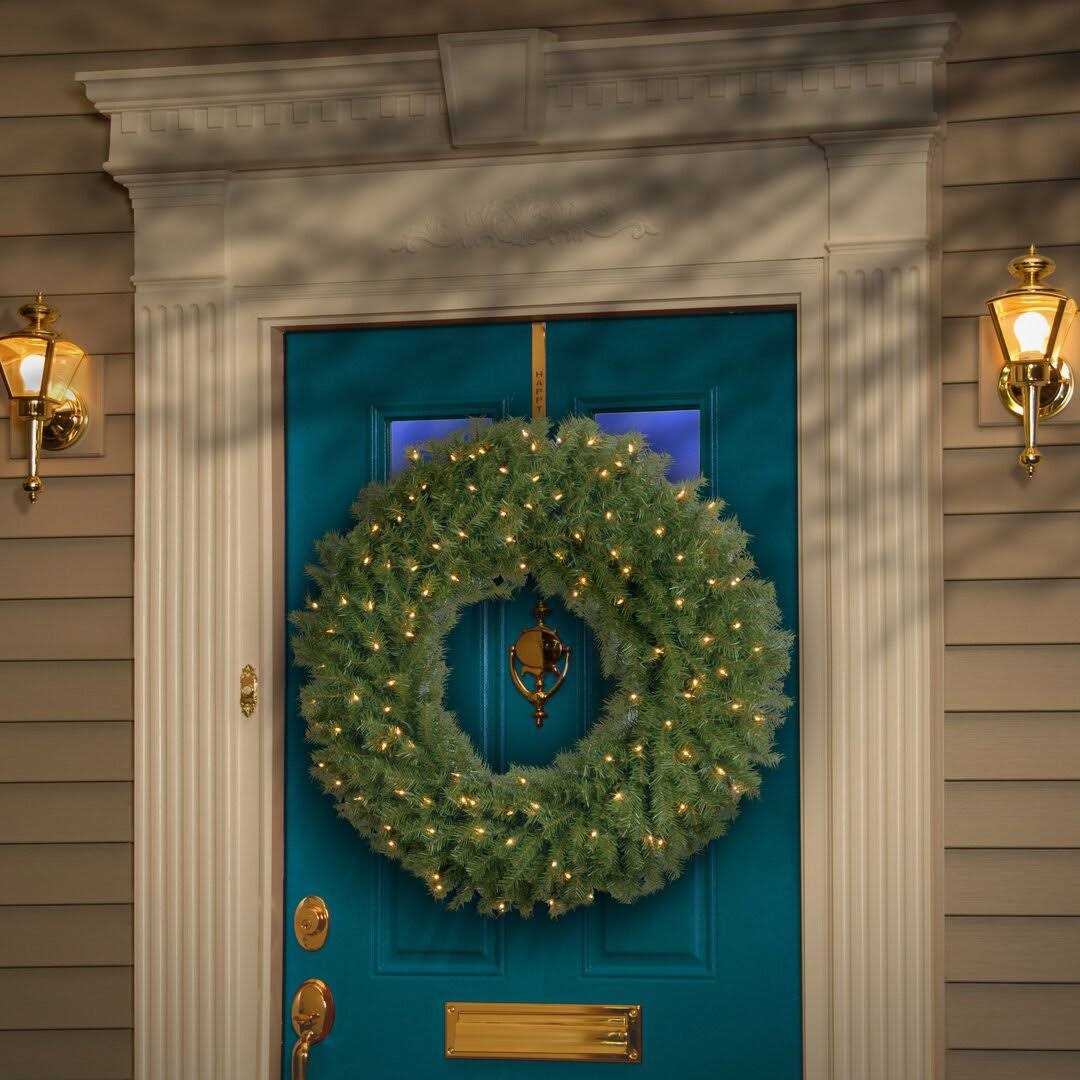 This artificial wreath is made for use year after year for each holiday season. It features thick, green evergreen branch tips made to look like the real thing without needles falling all over the ground. Made from PE materials, this traditional Christmas wreath comes circular and hangs easily on doors, walls, and windows. It’s also fade-resistant, so it should easily stand up to frequent use, either inside or in covered outdoor locations.