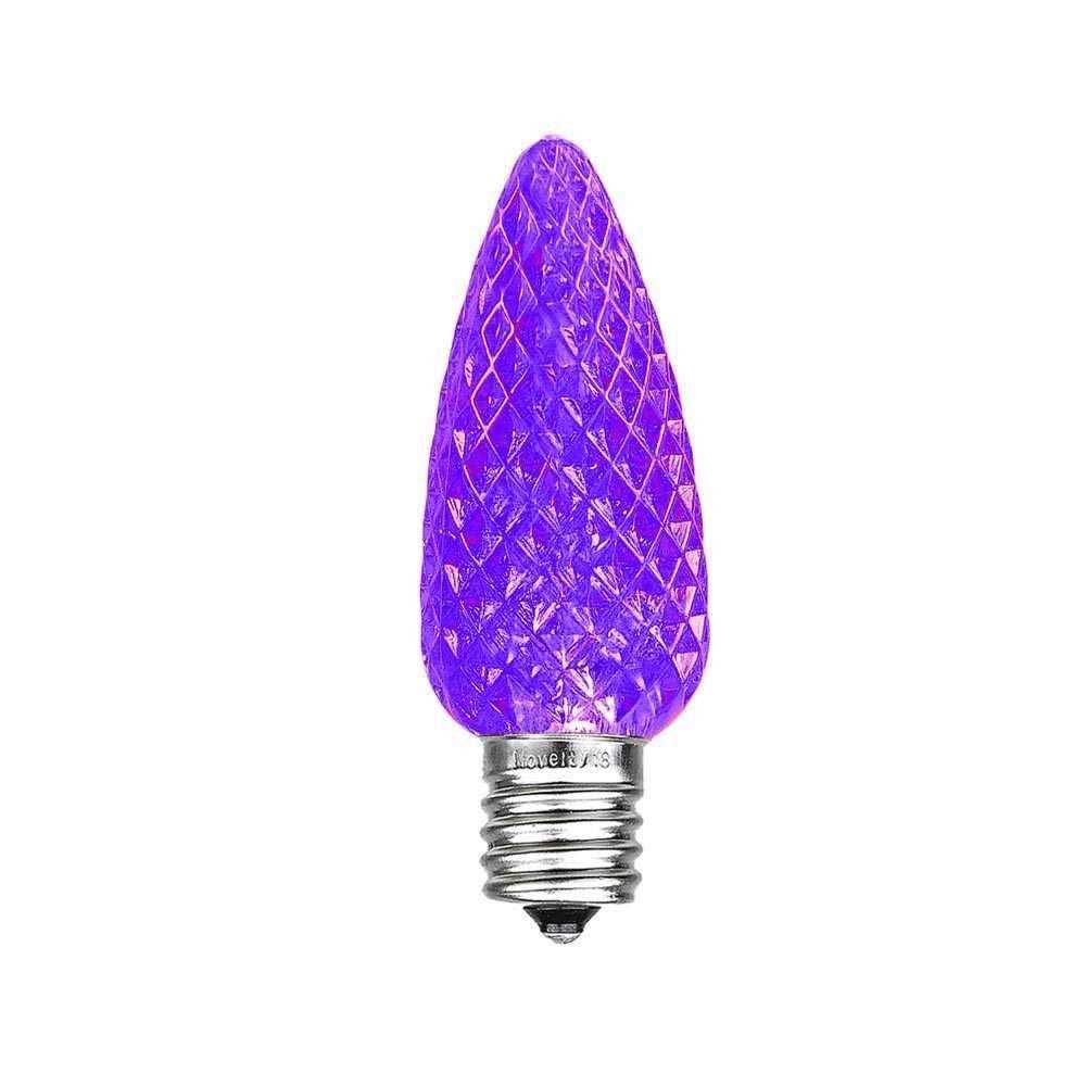 Diamond bright faceted C9 retrofit replacement lamps. Our brilliant C9 retrofit bulbs utilize a Super Bright 2 SMD LED creating evenly distributed vivid bright C9 LED bulb. These SMD C9 bulbs are also dimmable making them perfect for animated displays. All of our LED C9 bulbs are energy efficient using only 0.80 watts and 0.0067 amps. Our C9 diamond faceted LED bulbs will provide years of quality use. Perfect for seasoned Christmas light installers and easy for anyone to decorate roof lines, trees, buildings, walkways and porches. Switch out those old incandescent C9 bulbs that consume too much energy for our energy efficient retro-fit C9 bulbs utilizing 2 super bright SMD LED technology. Our LED C9 diamond faceted bulbs can be used with our C9 stringers (100 feet, 25 feet, 12.5 feet and 10 feet), as well as our commercial grade C9 bulk spools and our vintage twisted wire strings with E17 bakelite sockets.