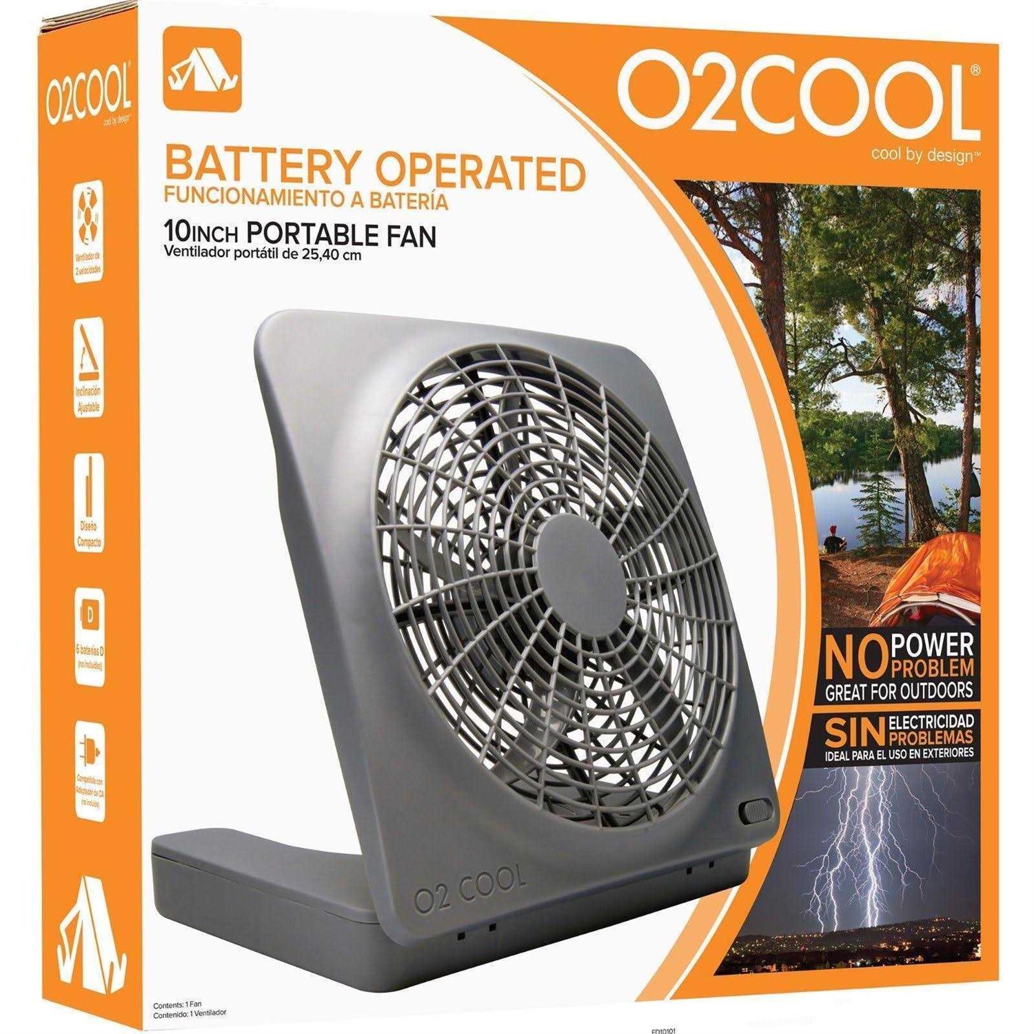 The O2COOL 10 inch Battery Portable Fan will help everyone stay cool, even when there is no electricity around. It is ideal for indoor and outdoor activities. This portable battery-operated fan can be used when camping or just having an outdoor gathering in the backyard. Use our 10 inch Portable Fan in a hot office or school, on a picnic and especially during a power outage. These battery-operated personal fans include a range of sizes, multiple power source options, patented blades for efficient operation and compact designs that allow them to be taken anywhere. The 10 inch fan needs six D-size batteries if it is going to be used where there is no electricity. It has a handle built-in for carrying, so it can be transported easily. When in use, the base pulls down for stability. If electricity is present, it can be used as a traditional fan.