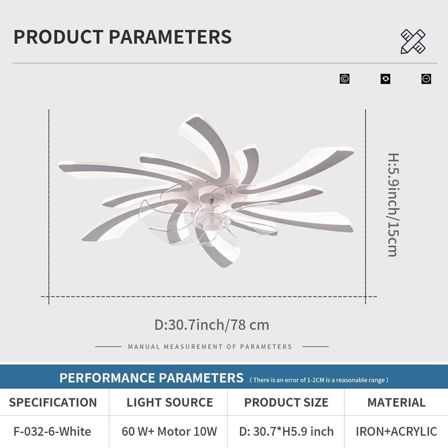 The stylish and functional ceiling fan is designed to enhance your living space while providing optimum comfort. With its sleek reversible blades, you can choose between a modern or traditional look to complement any decor. The integrated lights add a warm ambiance to the room, perfect for creating a cozy atmosphere. The fan features a convenient six-speed remote control, allowing you to easily adjust the airflow according to your preference. Experience the ultimate cooling and lighting solution with this versatile and efficient ceiling fan. Product Features Remote & APP Control: The ceiling fan lights has a reverse function, 6 wind speeds,1/2/4h timing, and all the functions can be operated by the hand-held remote or APP. Dimmable: The ceiling fan lights can be switched between white light 6000K, neutral light 4500K, and warm light 3000K through the remote control. Reversible Inverter Silent DC Motor: The ceiling fan with DC reversible motor allows you to switch the air circulation mode from downward to upward in different seasons.