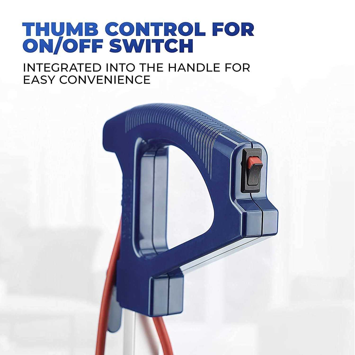 - ON/OFF SWITCH: Thumb control for on/off switch integrated into the handle for easy convenience