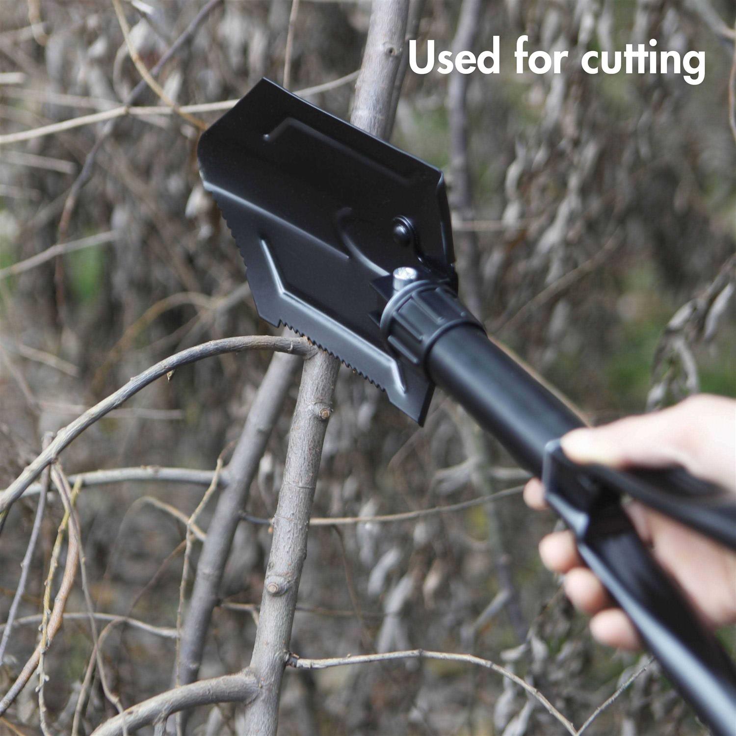Stay prepared with the Ozark Trail Folding Shovel. Made with a heavy-duty steel construction, offers strength and durability in outdoor activities. This steel shovel features a serrated edge that makes it easier to break through hard surfaces, such as tough dirt. The folding shovel can be opened manually easily. It folds open and has a locking mechanism to keep it shut for easy storage after use. Use this to dig your car out of snow or clear your way out when you are hiking. Be sure to include the Ozark Trail Folding Shovel to your emergency supply kit or survival gear to get you prepared whenever you are in need in your every outdoor adventure. It even comes in handy for heavy yard work. The Ozark Trail Folding Shovel is highly versatile due to its steel construction and sharp edge. Lightweight at 2.75 lbs.