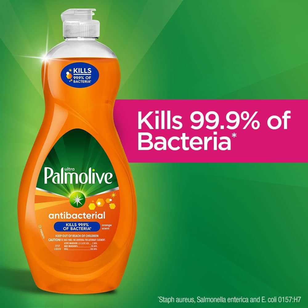 Ultra Palmolive Antibacterial Dish Liquid is approved to kill 99.9 percent of bacteria, allowing you to wash away more than just baked-on grease and giving you peace of mind that your dishes are as clean as can be. It uses a plant-based active ingredient and no harsh abrasives or phosphates to leave your dirtiest dishes, pots and pans sparkling clean. With a mild citrus scent, this dish liquid combines the best of both worlds: residue-free cleaning with antibacterial action on dishes.