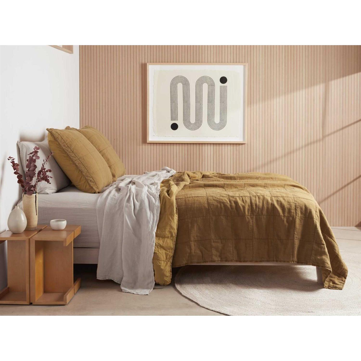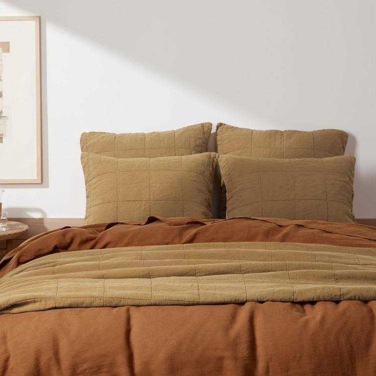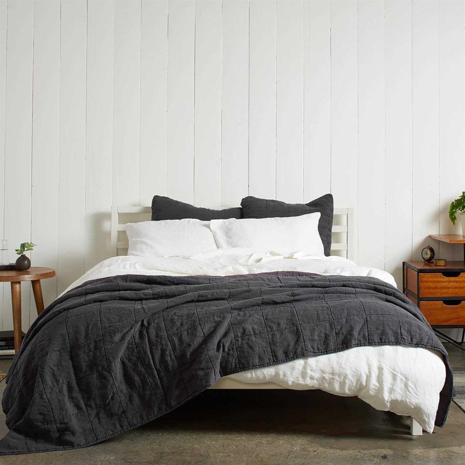 This stylish piece is the ultimate way to make your bed irresistibly cozy, no matter the season. A modern take on the classic quilt, this box pattern blanket has a medium weight that’s ideal for layering. Made of 100% garment washed linen on the front face and stonewashed percale on the reverse. 100% poly batting fill. Oeko-Tex certified.