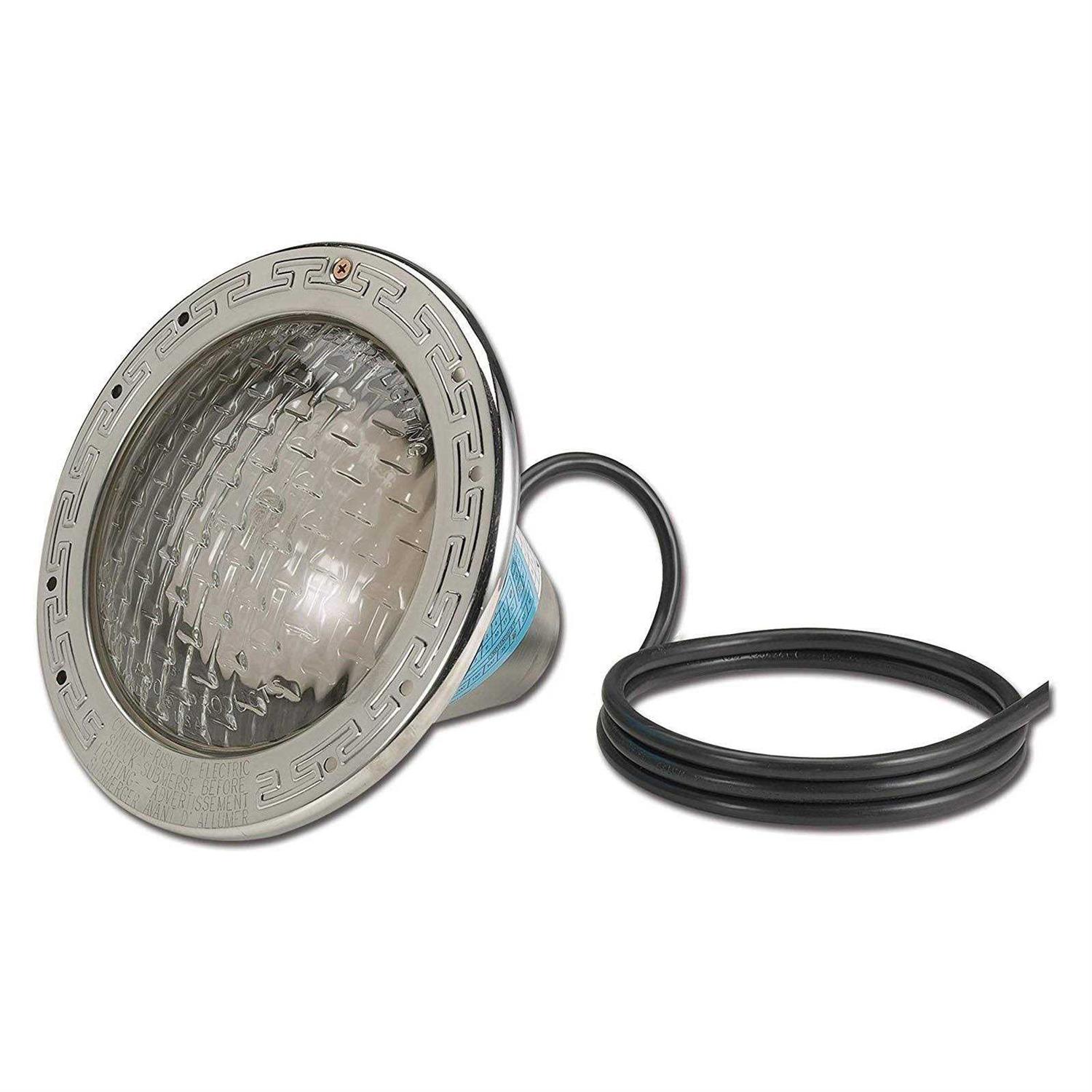 Light up the night while you relax in your pool or hot tub with this EC602128 Amerilite 500-Watt Swimming Pool Light from Pentair. Made with a prismatic tempered glass lens, this 500-watt outdoor pool light delivers optimum light diffusion, creating a pool experience you’ll always enjoy. The underwater incandescent light features a stainless steel shell built for long-lasting durability and high resistance to corrosion, perfect for withstanding chemical treatments and general wear and tear. A gold diffused low water cutoff and heat-sensing cut-off help prevent any damage by sensing when the water is getting too low. With a 50-foot cord, you’ll have plenty of length to work with for perfect placement. Easy to service, all Pentair lights allow bulb changes without lowering your water level and are UL listed when installed in Pentair niches. Enjoy your swimming pool day or night with the Amerilite 500-Watt Swimming Pool Light from Pentair.